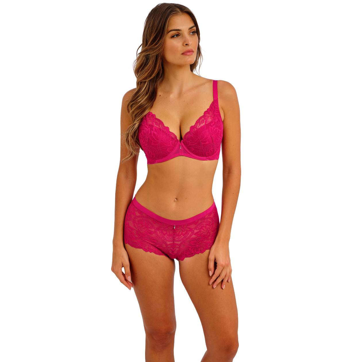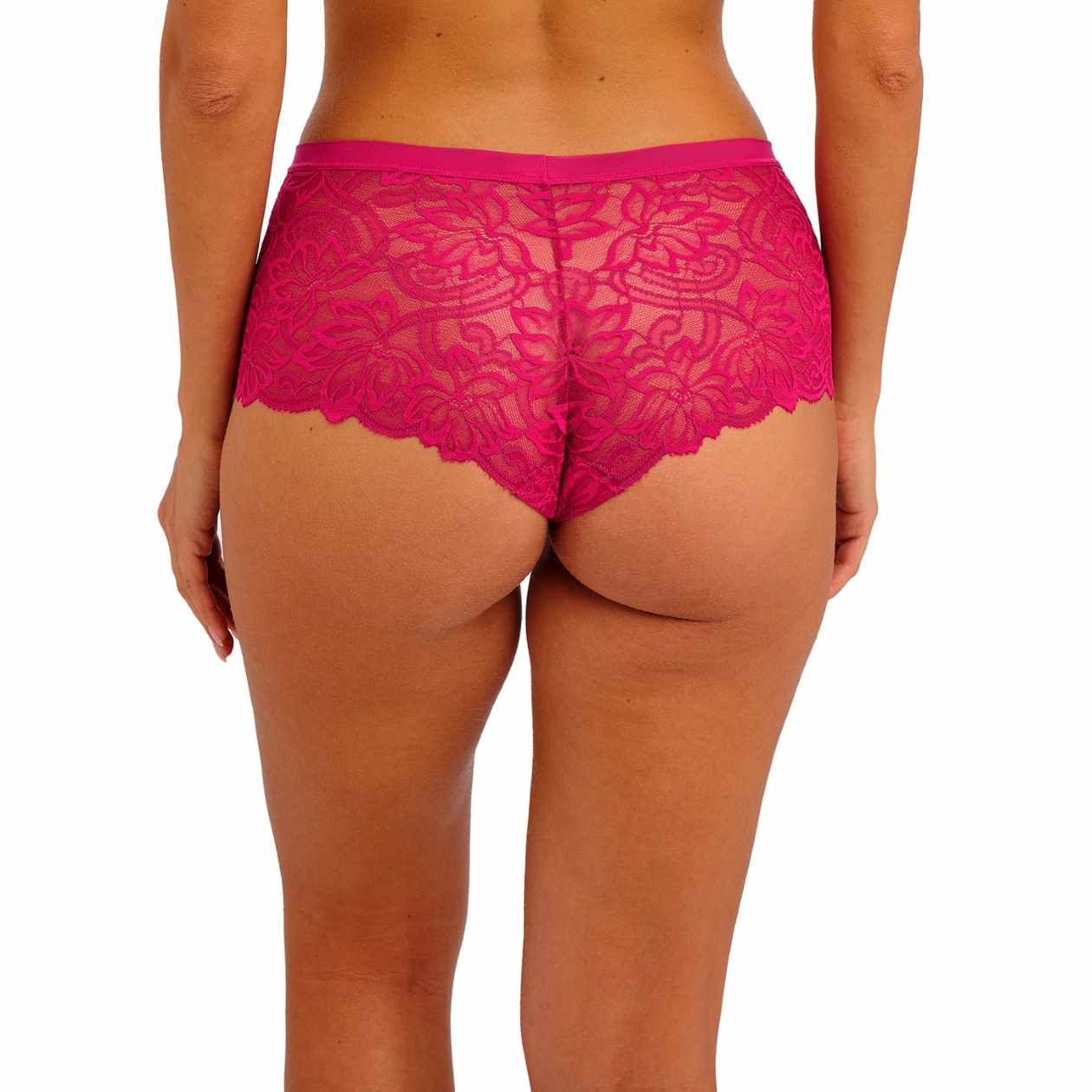 The Abellia Short is a comfortable and cheeky style with a mid-rise waist and cheeky back coverage. It's a full stretch lace short with beautiful scallop detail at the leg edges. A folded stretch mesh waistband ensures comfort, and a delicate pearl drop effect trim at the center front adds a final elegant touch.