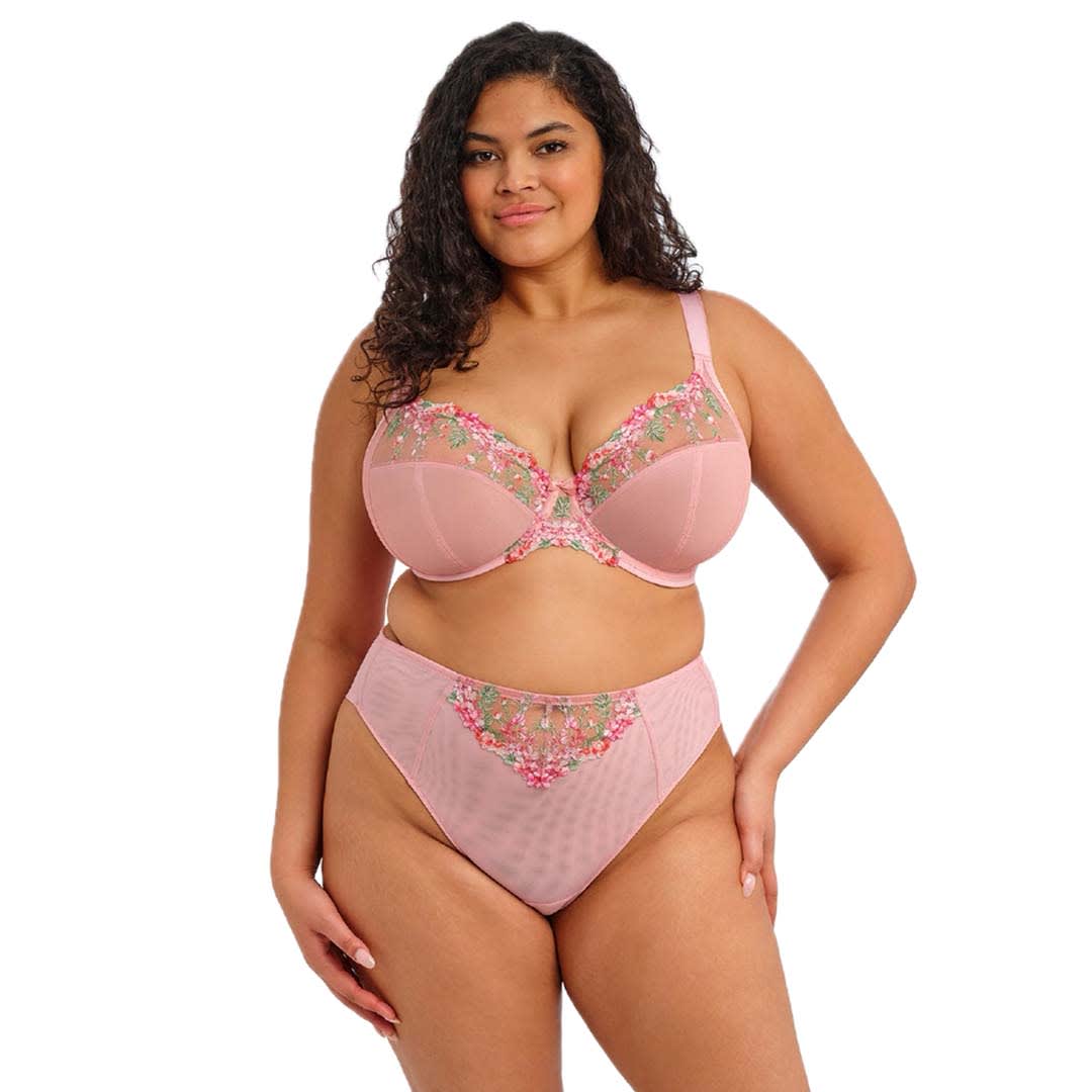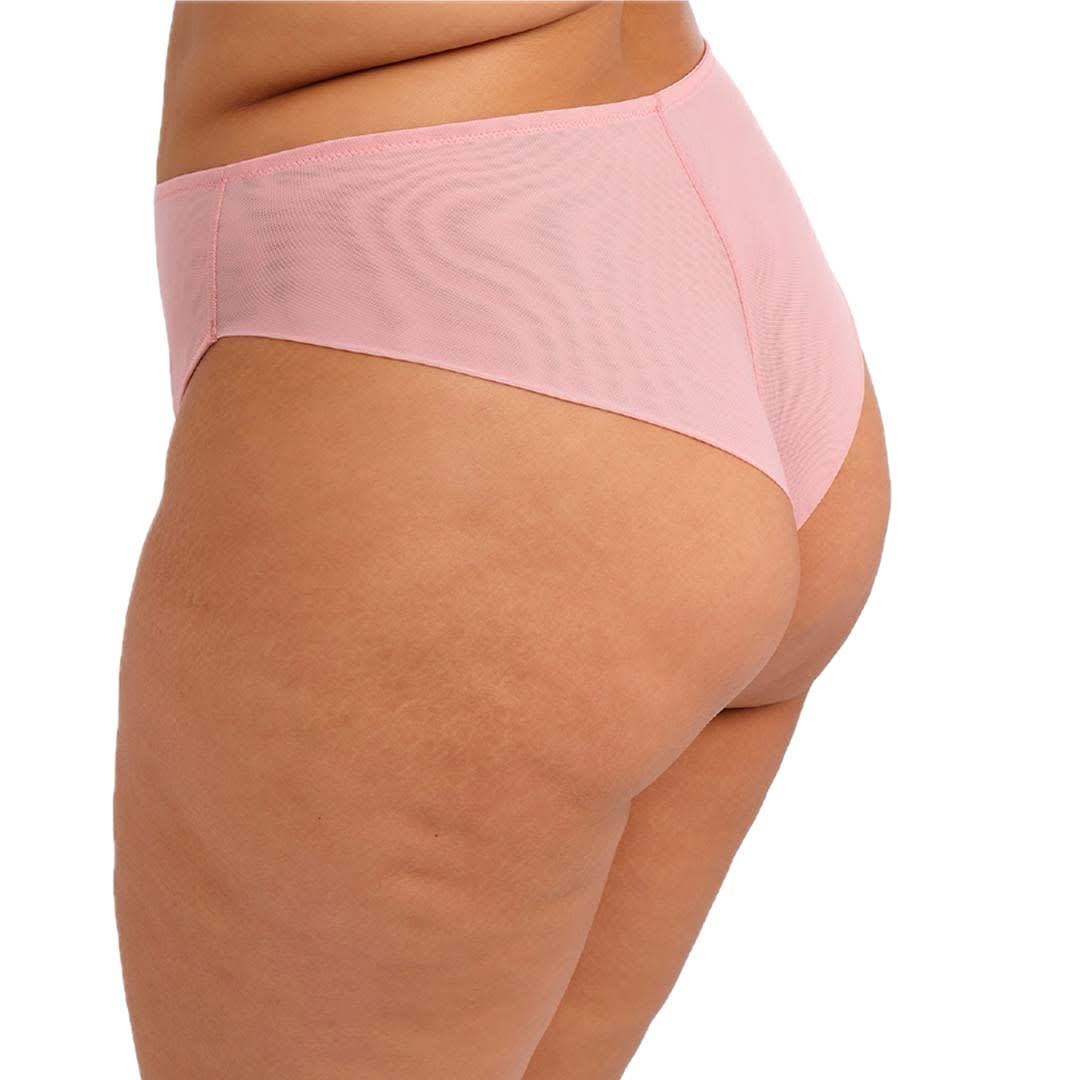 The Aerith Brazilian Brief a double-layer stretch mesh front and back for enhanced modesty, folded-edge back leg panels for a smooth, no–visible pant line finish, and elegant front embroidered inset panels for a refined touch.