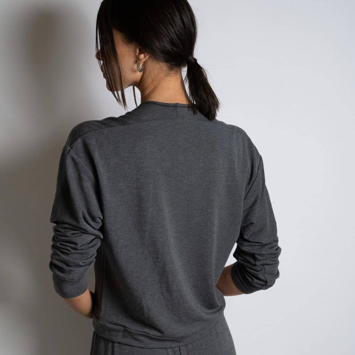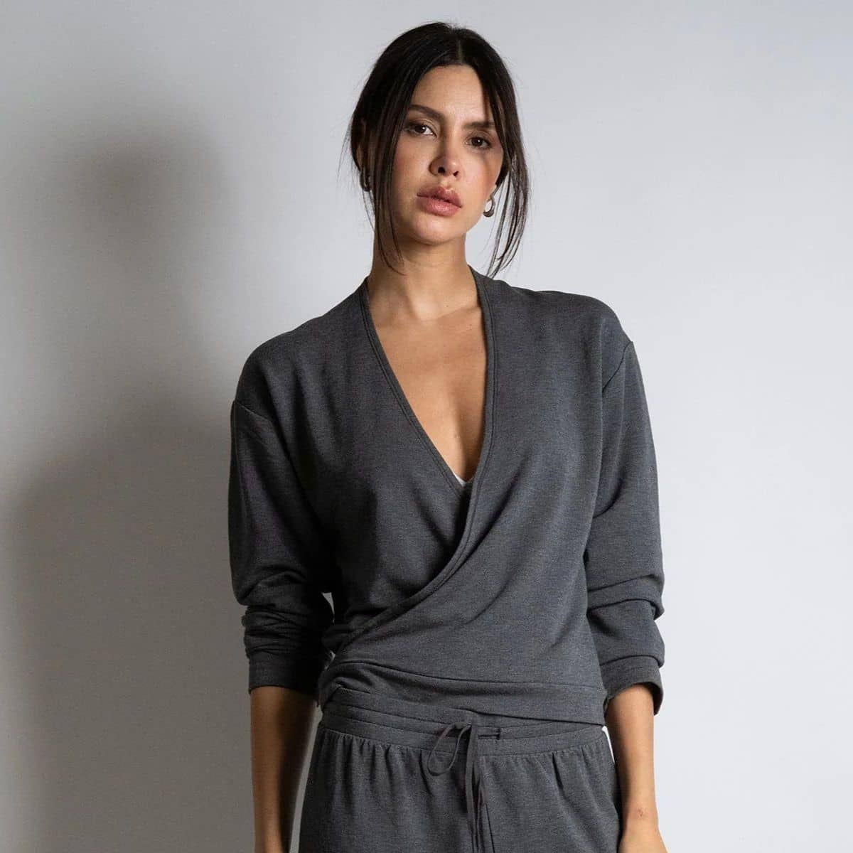 Cosy relaxation meets feminine styling in this soft, long-sleeve lounge top, made from ultra-soft modal fabric. The faux wrap design creates an open plunge neckline that looks great worn on its own or with lingerie.