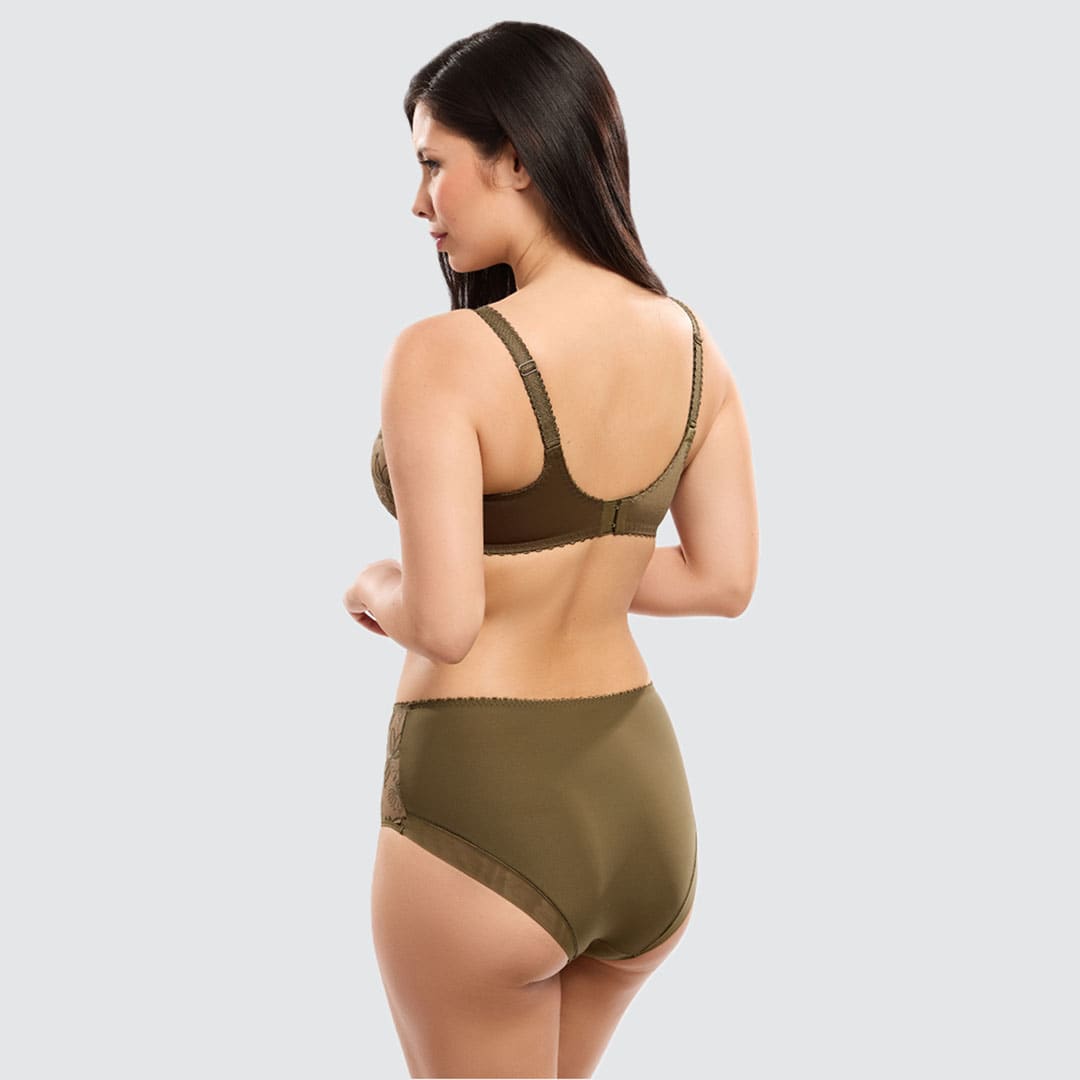 The Alix low low-necked underwired Bra features a demi-cup shape that enhances the neckline while offering gentle support. Non-padded cups provide a natural silhouette, complemented by decorative adjustable straps and a delicate jewel detail for an elegant finishing touch.