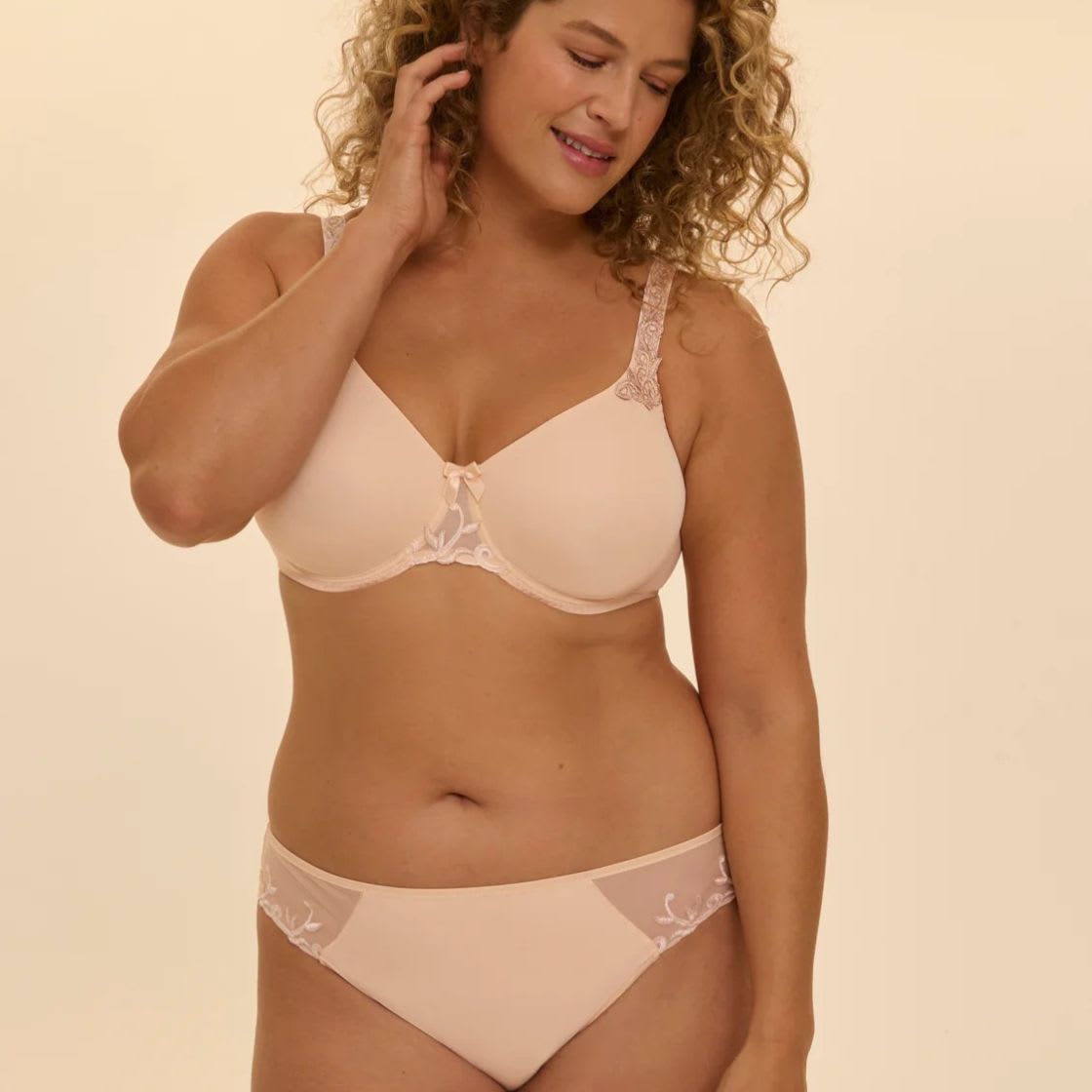 Indulge in the elegance of the Andora collection by Simone Perele. This seamless bra combines smooth molded cups and underwire for exceptional support and a flattering silhouette. Adjustable straps with guipure trim add a touch of sophistication to enhance your décolletage. With a secure hook and eye closure, this bra is an essential everyday luxury.