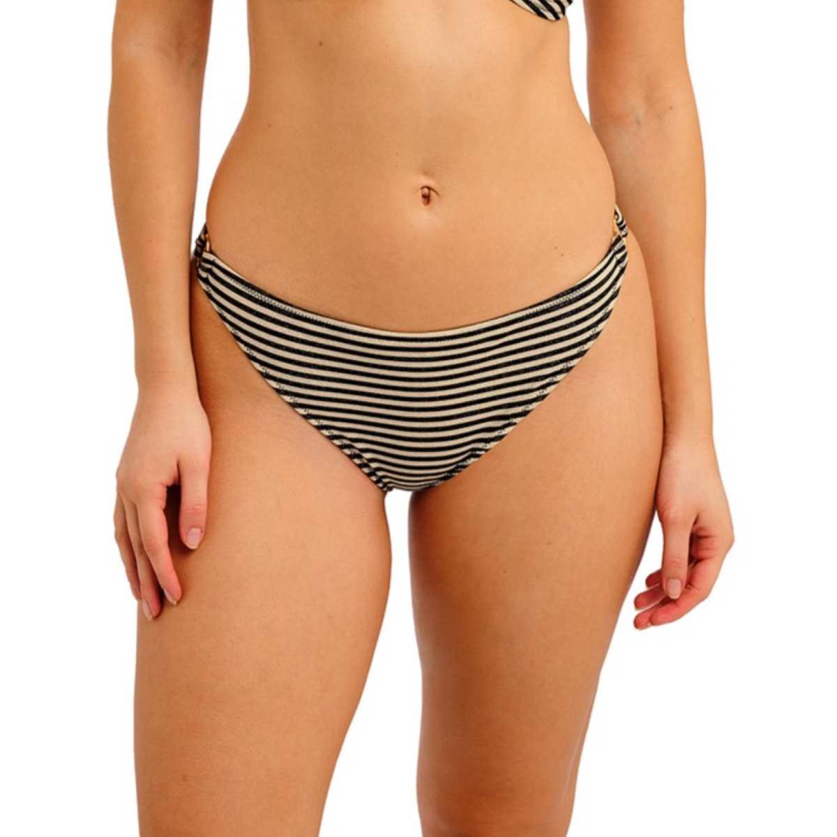 Show off your style in the Arizona Wave Italini Bikini Brief. Designed to sit on the hips with a cheeky cut away back. The fabric base includes on-trend metallic gold yarns for a touch of shimmer.