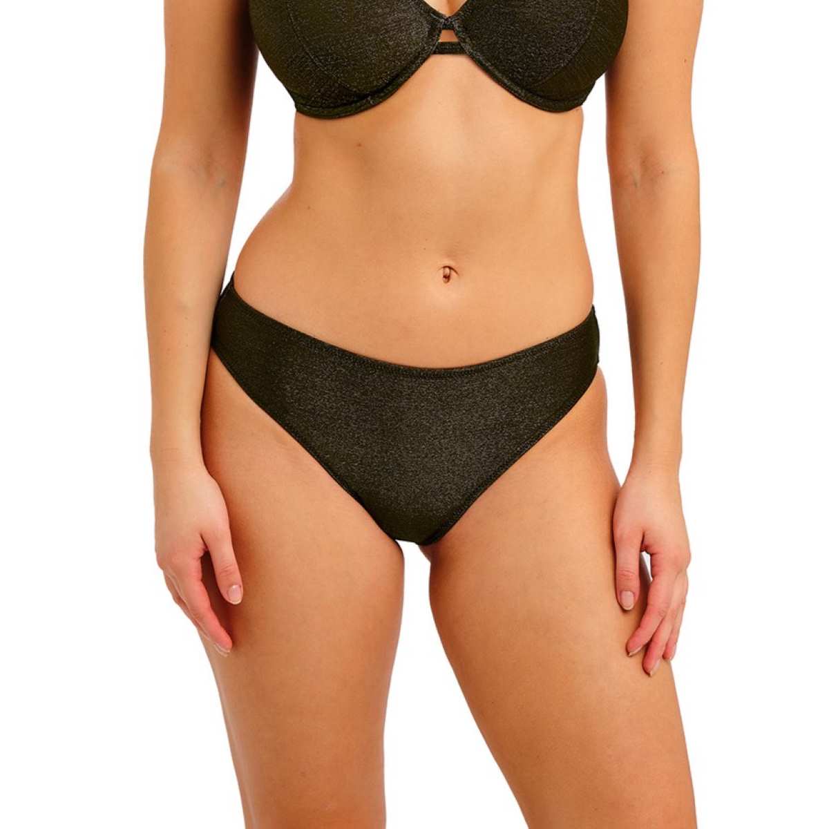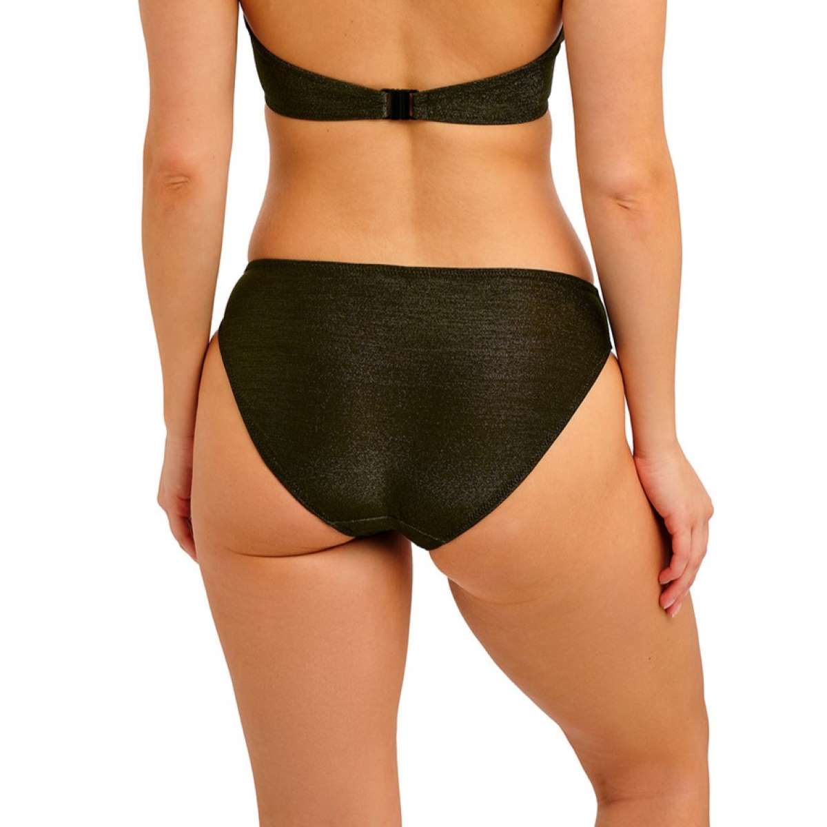 Find your perfect beach day essential with the Arizona Wave Bikini Brief. Designed to sit comfortably on the hips with a flattering cut around the leg and good bottom coverage. The fabric also features subtle metallic gold yarns for a hint of style.