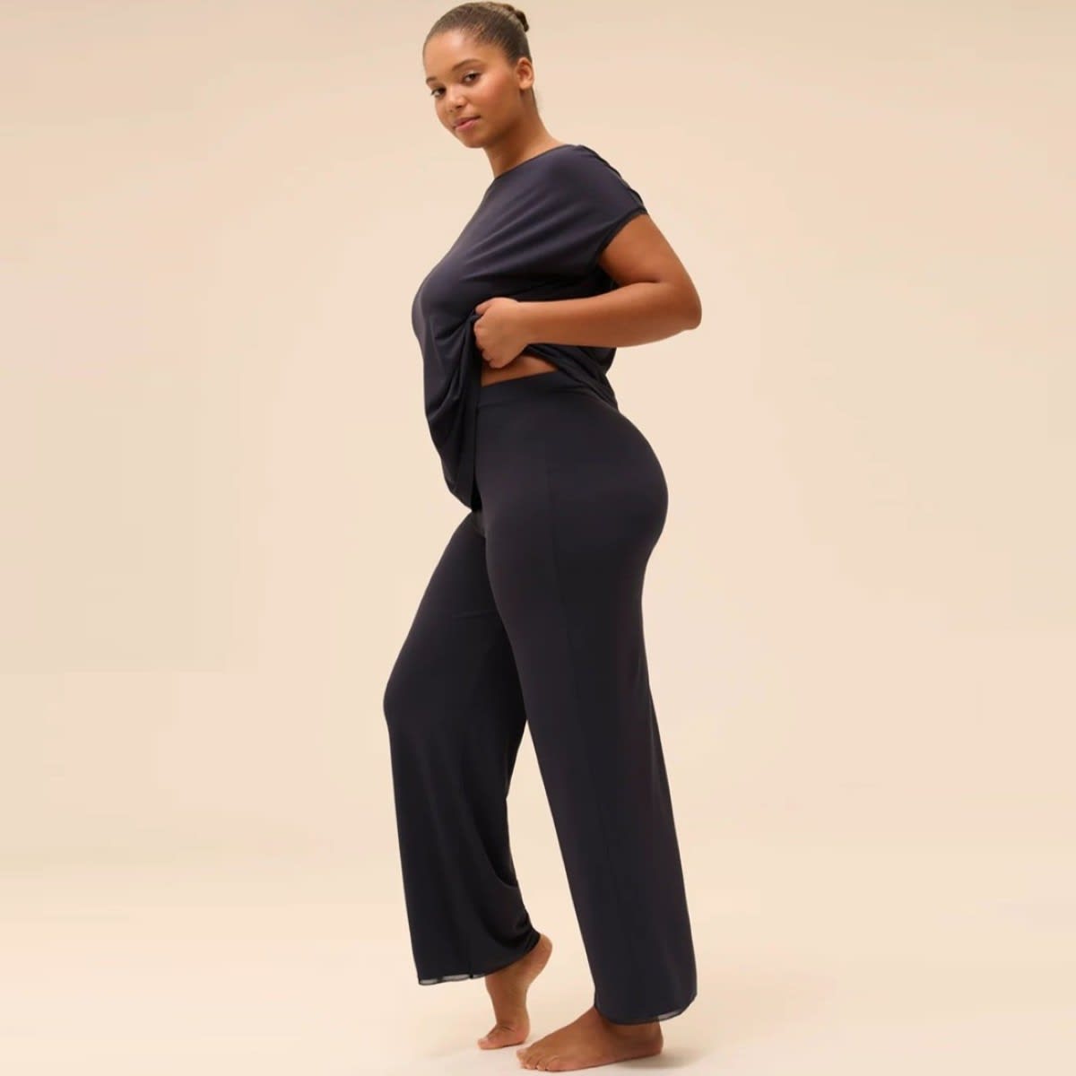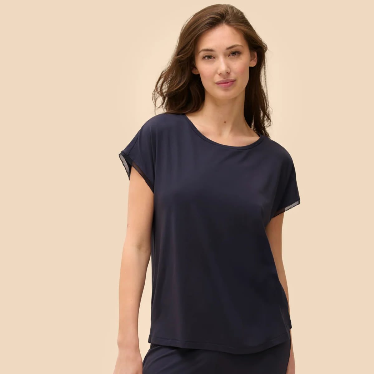 Short sleeves t-shirt in eco-friendly viscose, a flowy and ultra soft fabric. Wide fit. Lace band at armholes.