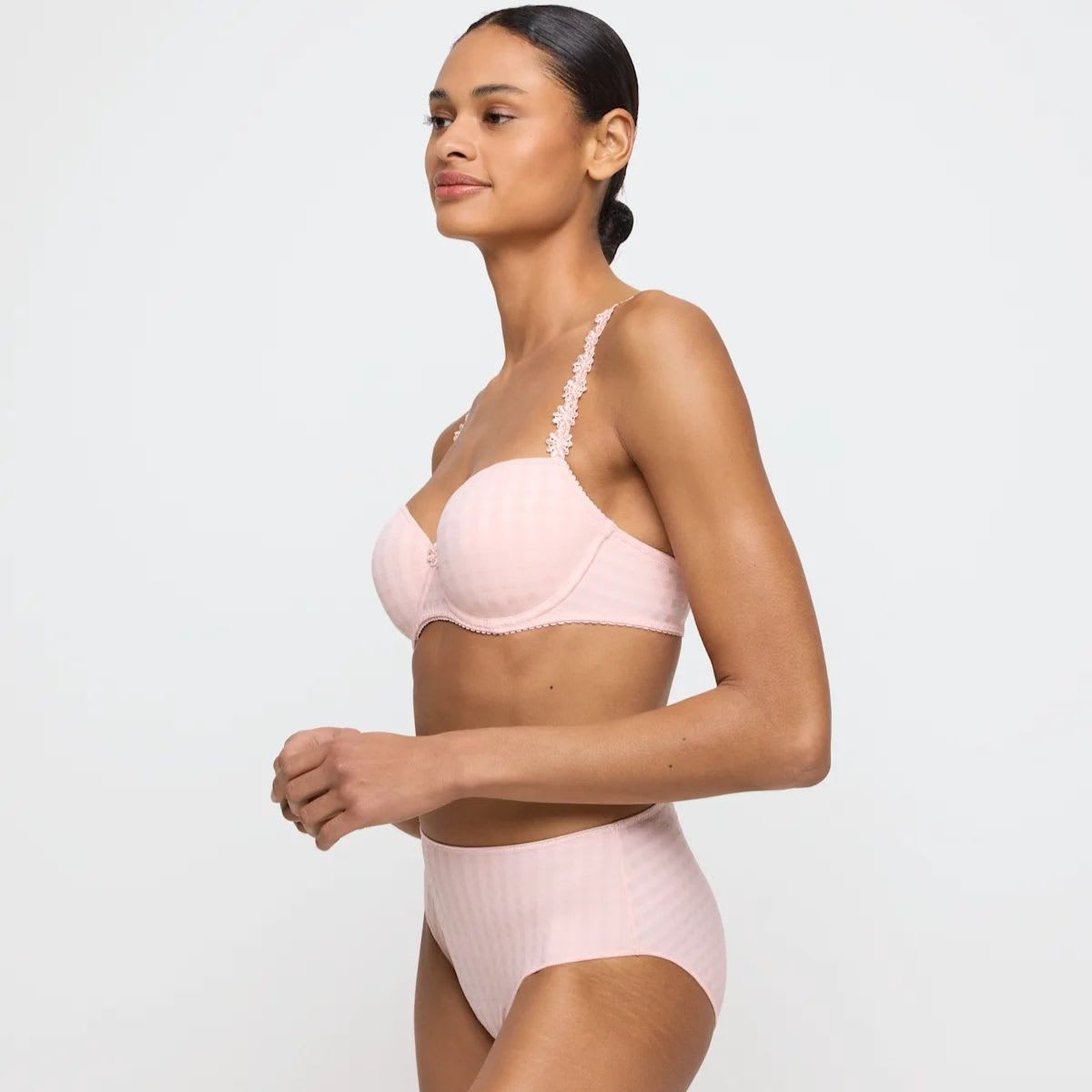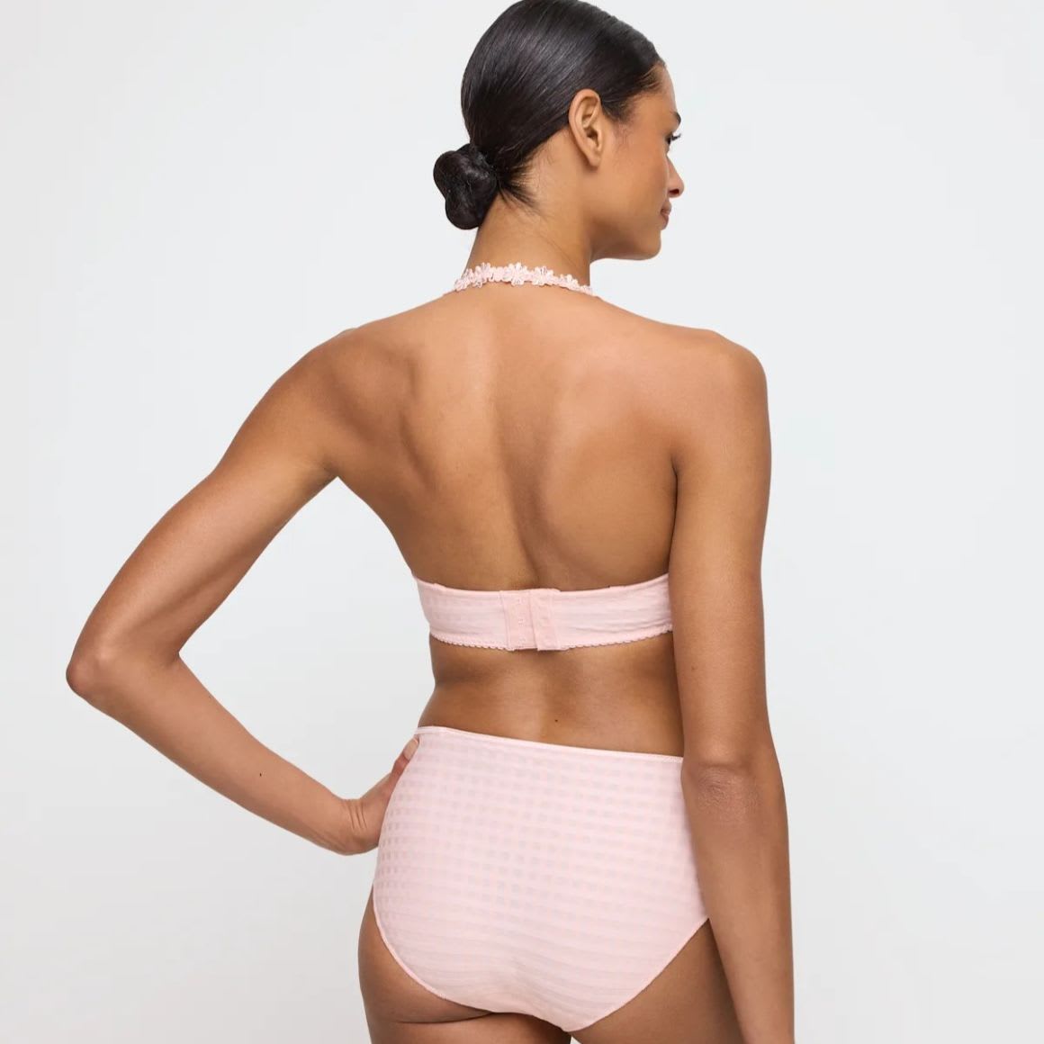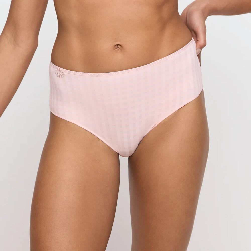 Avero Full Briefs in checked fabric, decorated with a daisy trim. These high waisted opaque briefs cover part of the tummy, creating a smooth silhouette and offer full rear coverage. With no visible lines thanks to the thin strip on the bottom, this piece is perfect for everyday wear.
