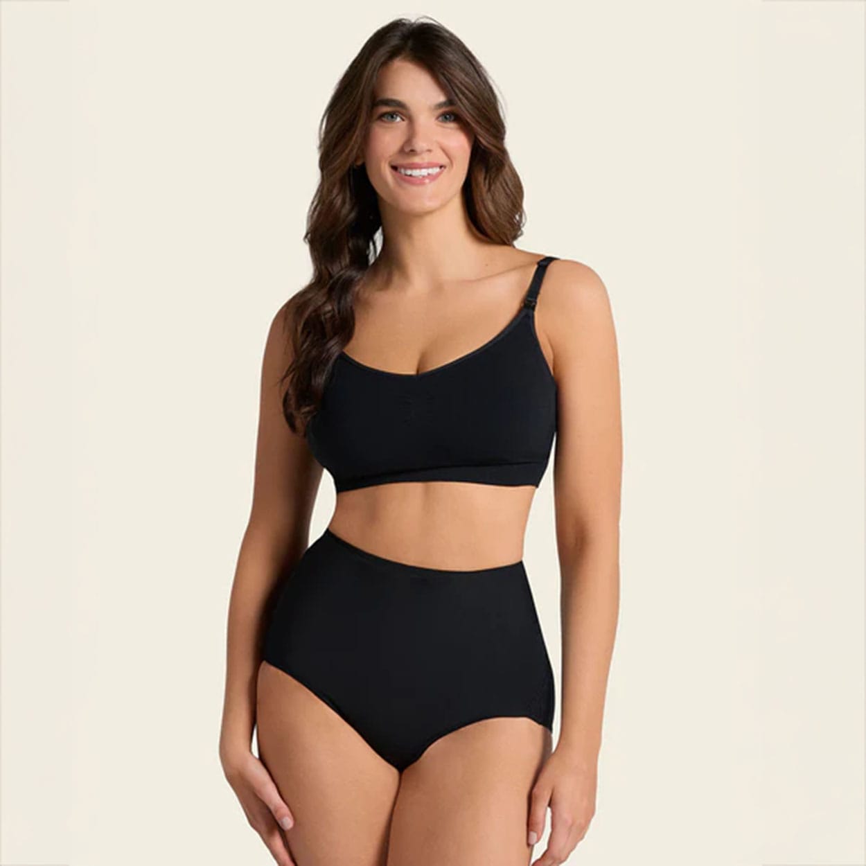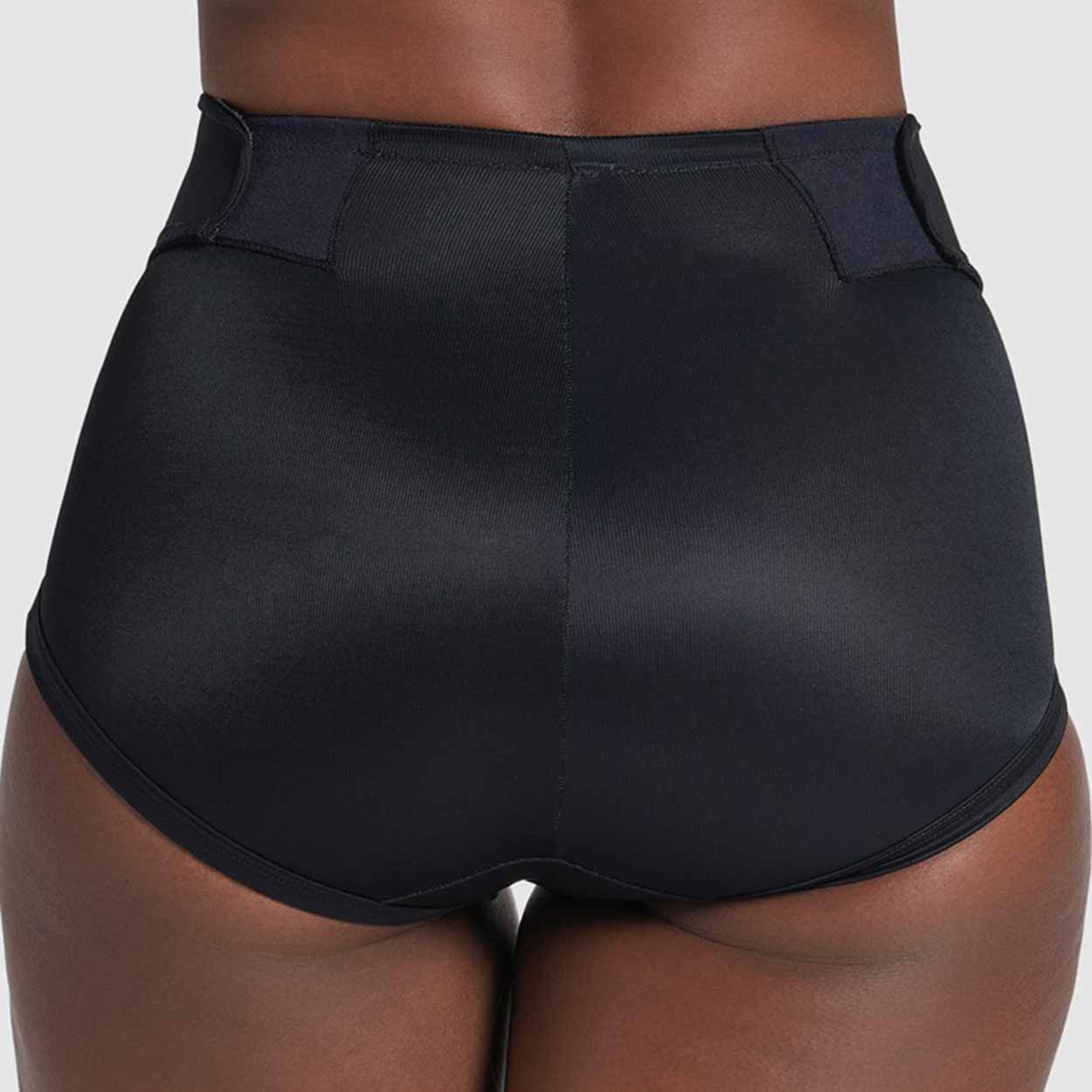 The Bellyflex Firm Compression Adjustable Postpartum Belly Wrap Brief is a classic mid-rise postpartum compression panty designed to help you recover after a C-section or natural delivery. It features a triple-layered compression design with a front panel made of double-layered PowerSlim® for firm tummy support. Wide Velcro sides allow for easy adjustability and a perfect fit. This brief also helps protect C-section incisions and may aid in recovery from a prolapsed bladder. For comfort, it includes soft leg bands and a ruched seam for a natural butt-lifting effect.