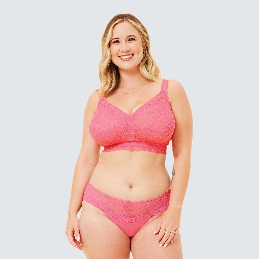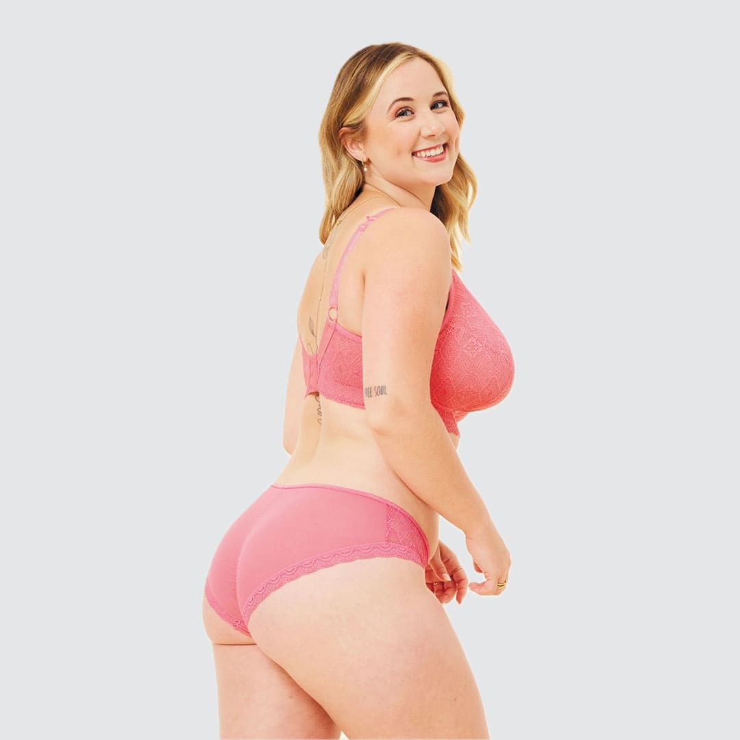 The Bestie Brief is the perfect match for our Fuller Bust Bestie collection. Featuring coordinating lace and a flattering sheer scrunch back, it’s the ultimate companion to the Bestie Bra. Complete the set for a look you’ll love.