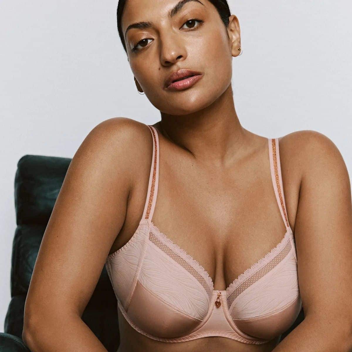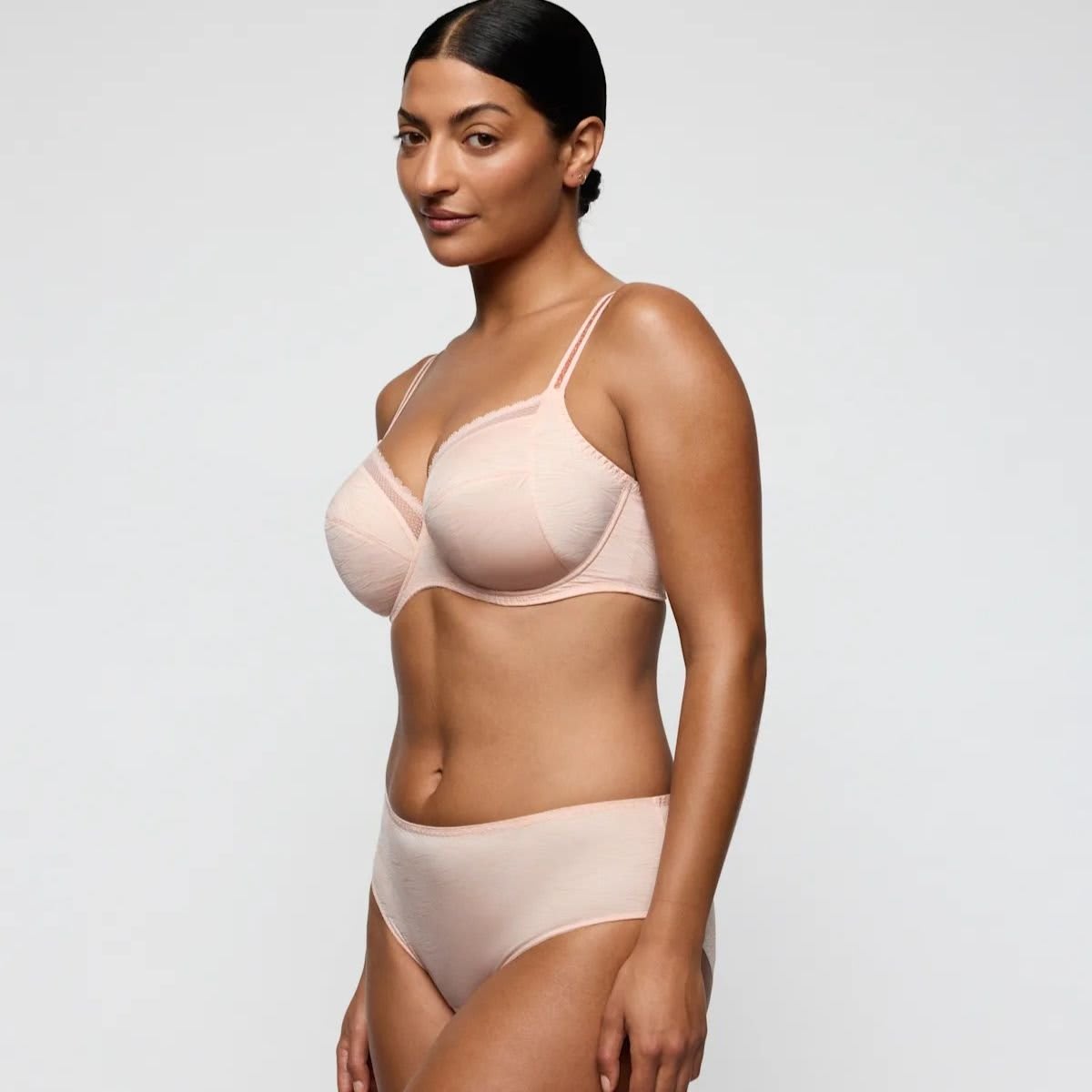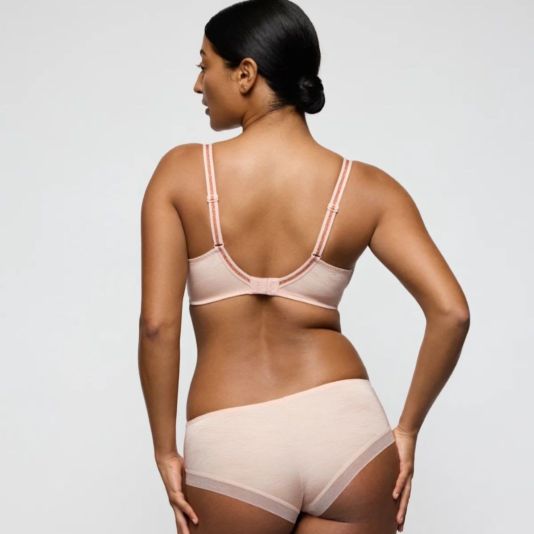 Comfy non-padded wired bra. Stylish non-transparent design. Stylish straps to hide or show. In pale pink with glitter details.