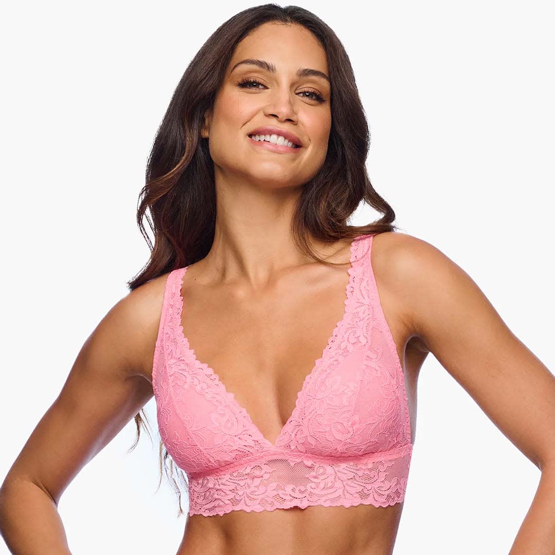 Carmela Plunge Bralette is a wireless plunge-front bralette featuring tall, triangle-shaped lined cups for a natural, flattering shape. Designed in an easy pull-on style with adjustable straps for a custom fit. Hand wash only; do not tumble dry.