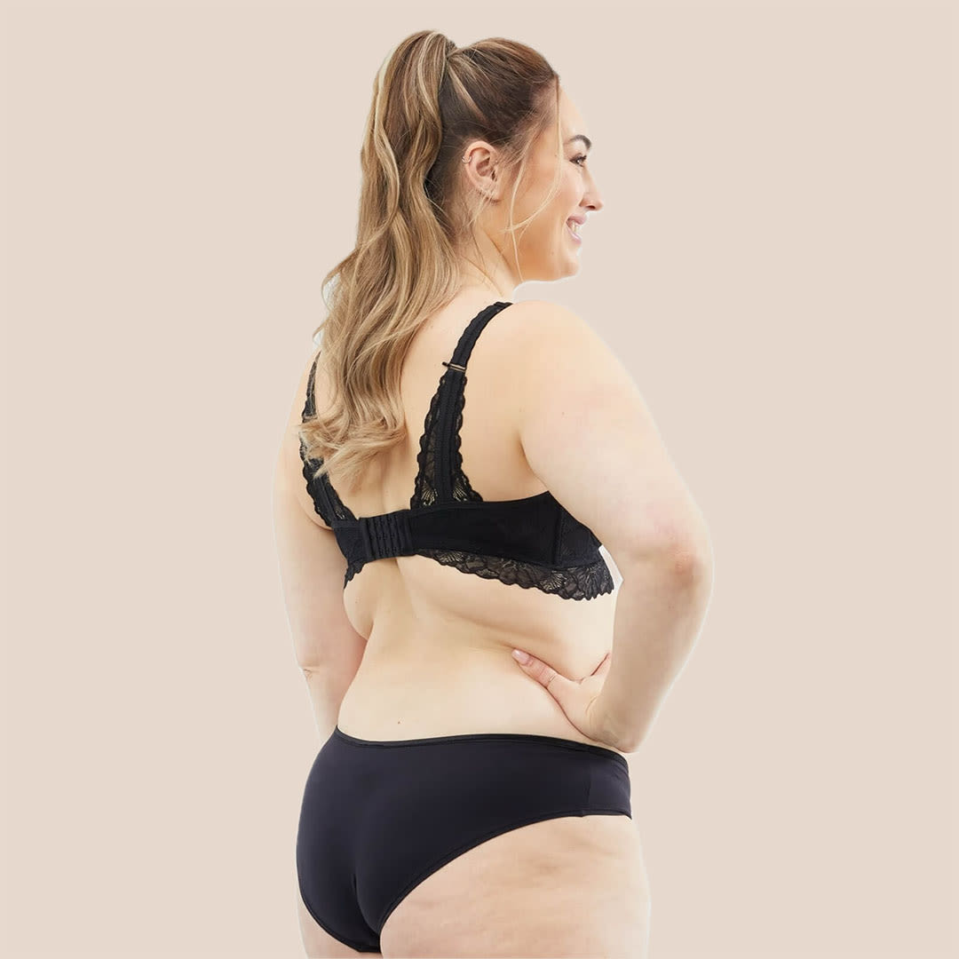 A wire-free Chantilly B-D Maternity & Nursing Bralette featuring soft French-inspired lace, easy drop-down cups, and flexible, supportive design for comfort and growth during motherhood.