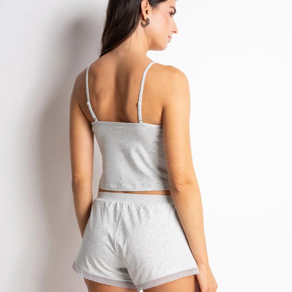 A crop top with thin straps. Short tank top, comfortable for everyday use to relax or sleep in style. Designed from an ultra-soft blend of cotton and modal, embellished with a refined lace trim for a feminine and elegant touch.