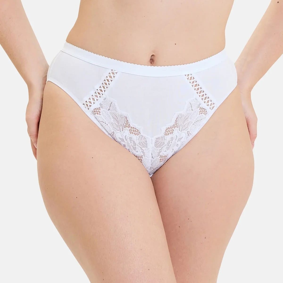 Chic French style meets super-soft comfort in this organic cotton brief, which features the signature Arum collection lace and openwork detailing at the front and a stretch-cotton back. Cut high on the leg - the classic 'French cut' - for a flattering fit.