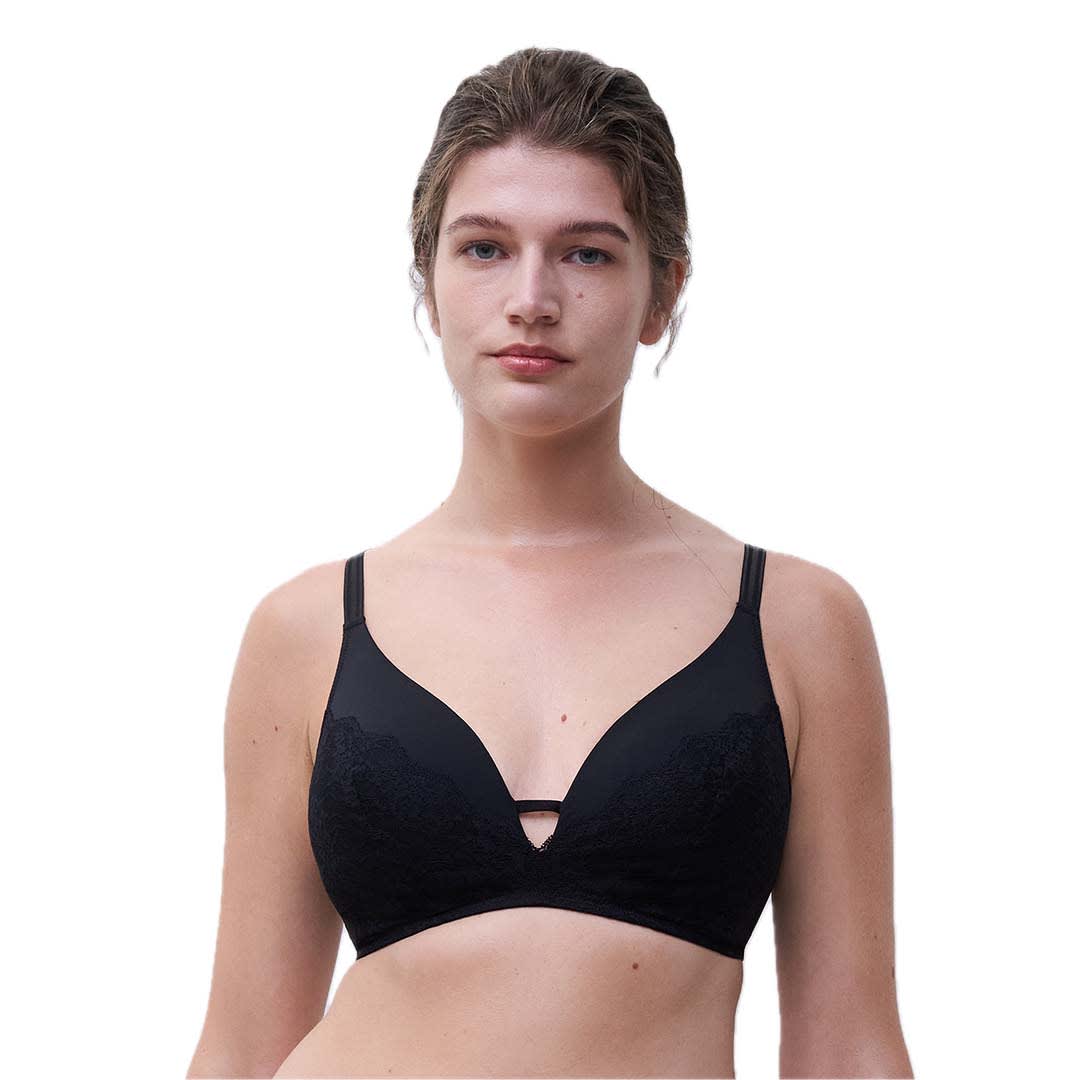 The Crush Wirefree T-Shirt Bra features a flattering plunging neckline and blends opaque knit with floral lace and elastic tulle for a smooth, feminine look. It has fully adjustable textured straps, a straight elasticated back for optimal support, is OEKO-TEX® Standard 100 certified, and is designed in France.
