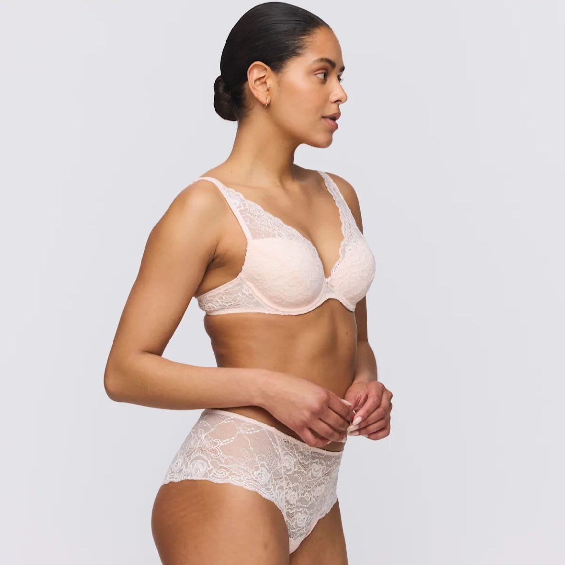 A stunning full lace look that’ll give you lots of comfort. Comfy padded underwired bra.