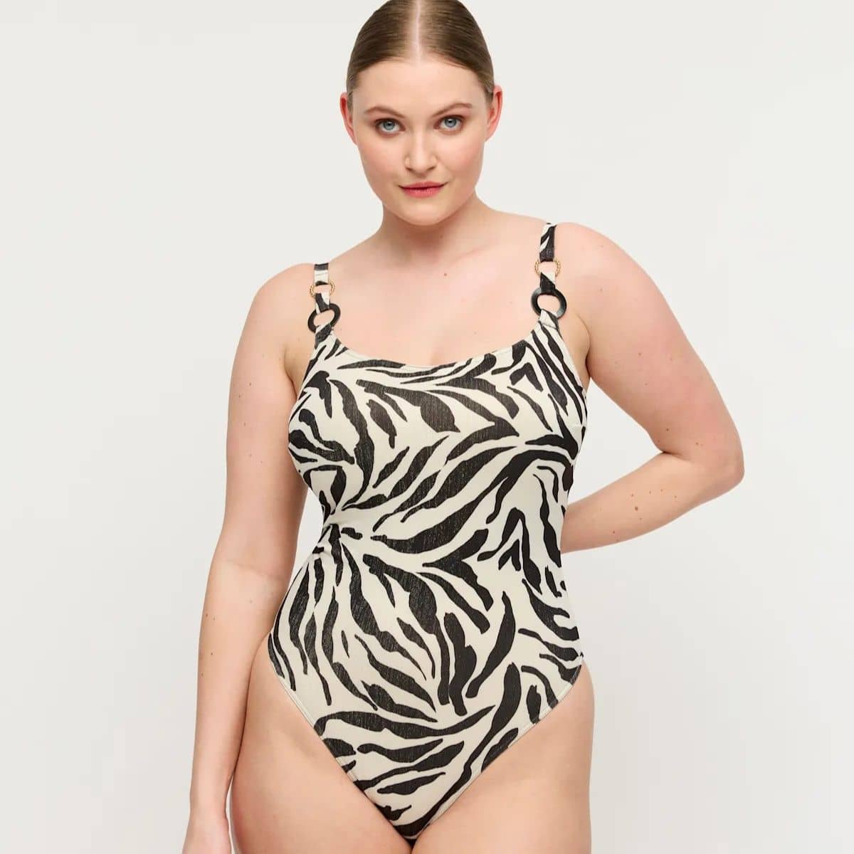 Poolside glam was never this comfy. Pure luxury! Wireless swimsuit with padded cups for ultimate comfort. Cool print with a glitter effect.