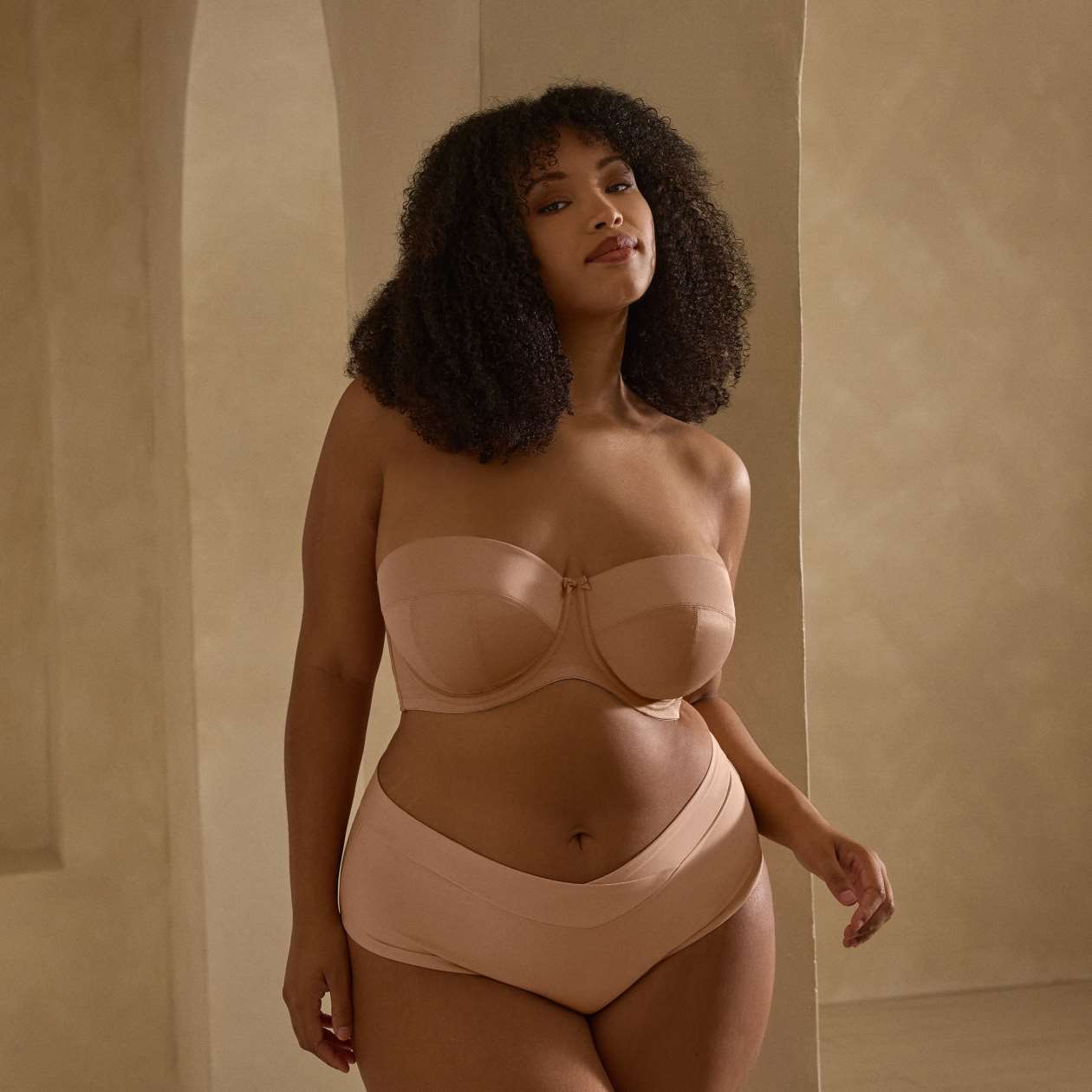 Dana is a fabulous Strapless Bra now available in the Sculptresse range! With slightly shaping wings and a deep hook and eye finish with plastic boning to offer confidence and comfort. Four section padded cut and sew cup shape to provide a supportive and uplifted fit. Styled on a cradle and with double layer slightly shaping wings provide firm and comfortable support around the body.