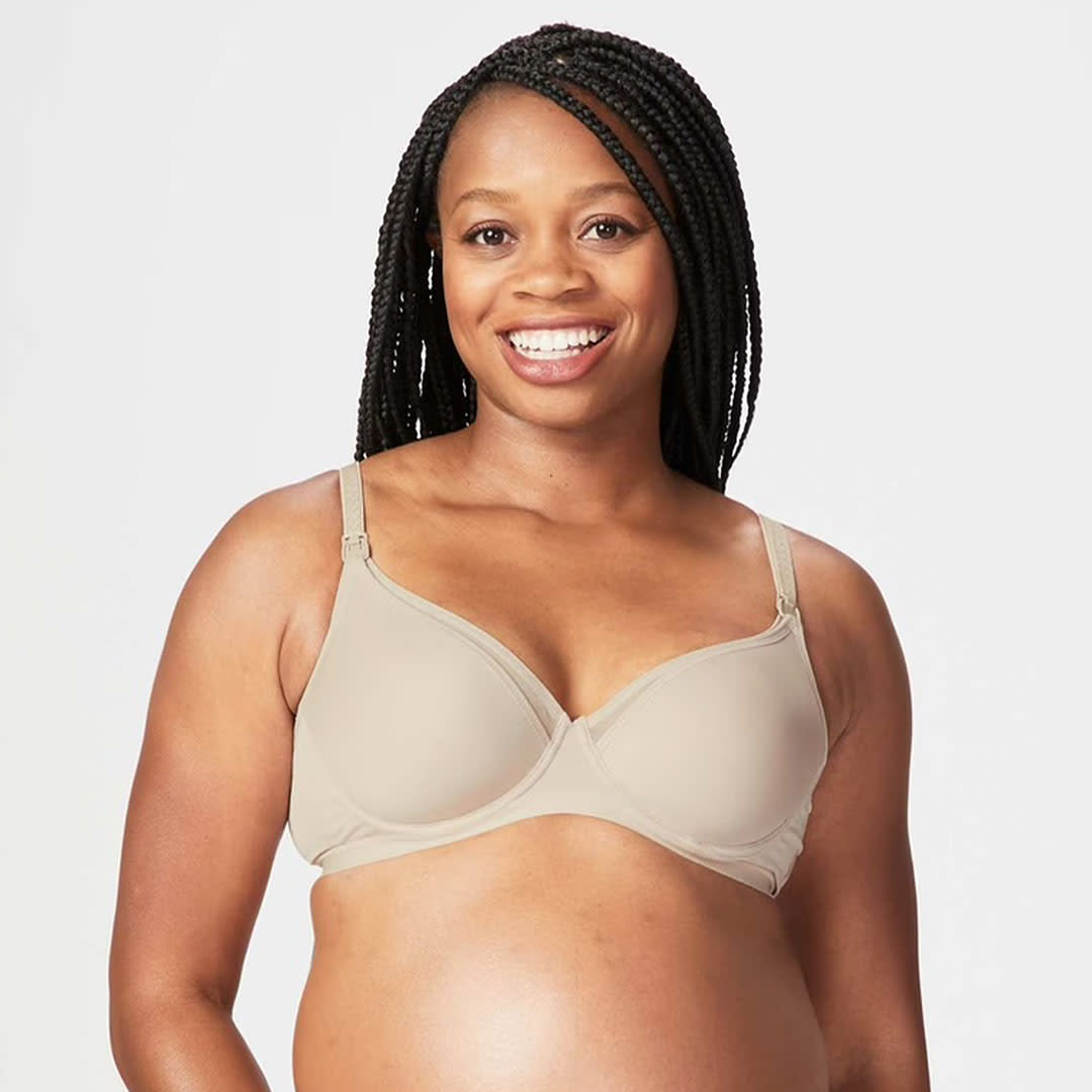 The perfect balance of sexy and practical that will take you from day to night, the Empower T-shirt Maternity & Nursing Bra gives mamas the smooth profile they need and the sleek design they desire. Our flexi-wire support is perfect for pregnancy and beyond, offering lift and shape for all breast shapes. With easy drop-down cups designed to be clipped single-handedly providing easy access for breastfeeding.