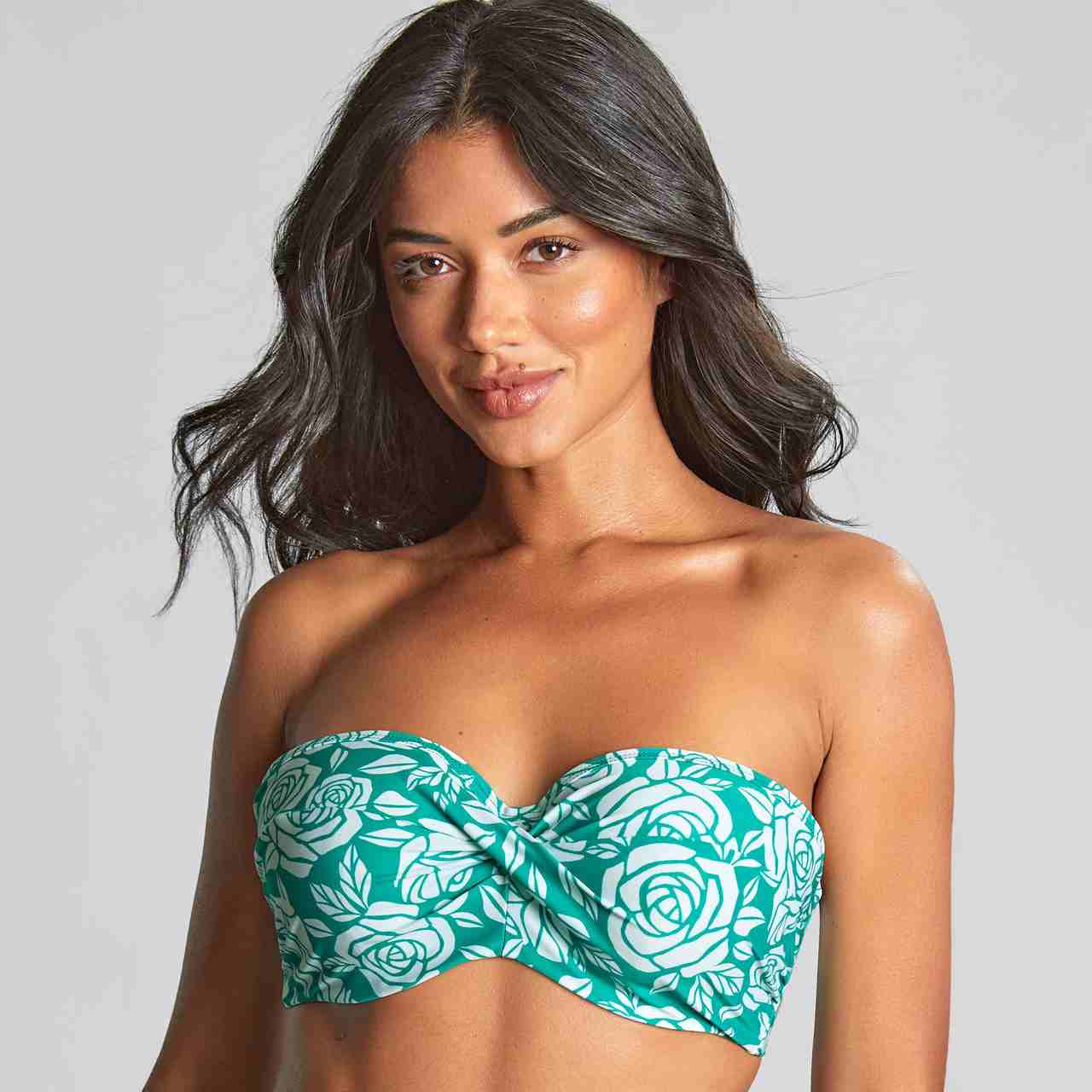 Designed for your most care-free summer moments, the English Rose Ella Bandeau Bikini Top offers a tan-line-free look combined with the expert engineering you rely on. This most-loved silhouette is updated with an exclusive English rose print on soft, sustainable recycled polyamide with a premium twist-front detail. For maximum strapless support, it features 3-piece foam inner cups, ensuring a secure and body-loving fit. Complete with detachable straps for alternative styling and extra lift, this bikini top is built to support you beautifully all holiday long.