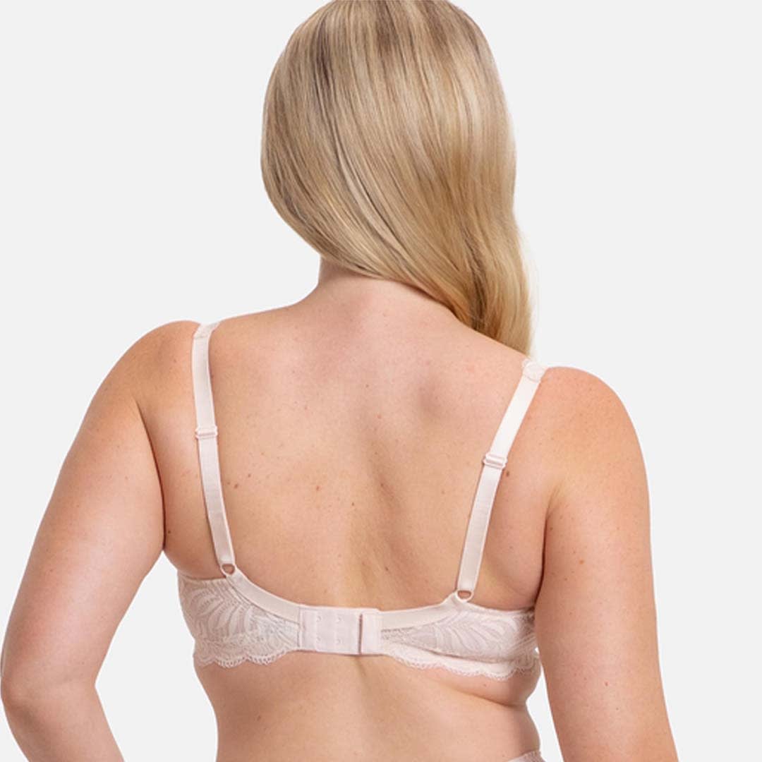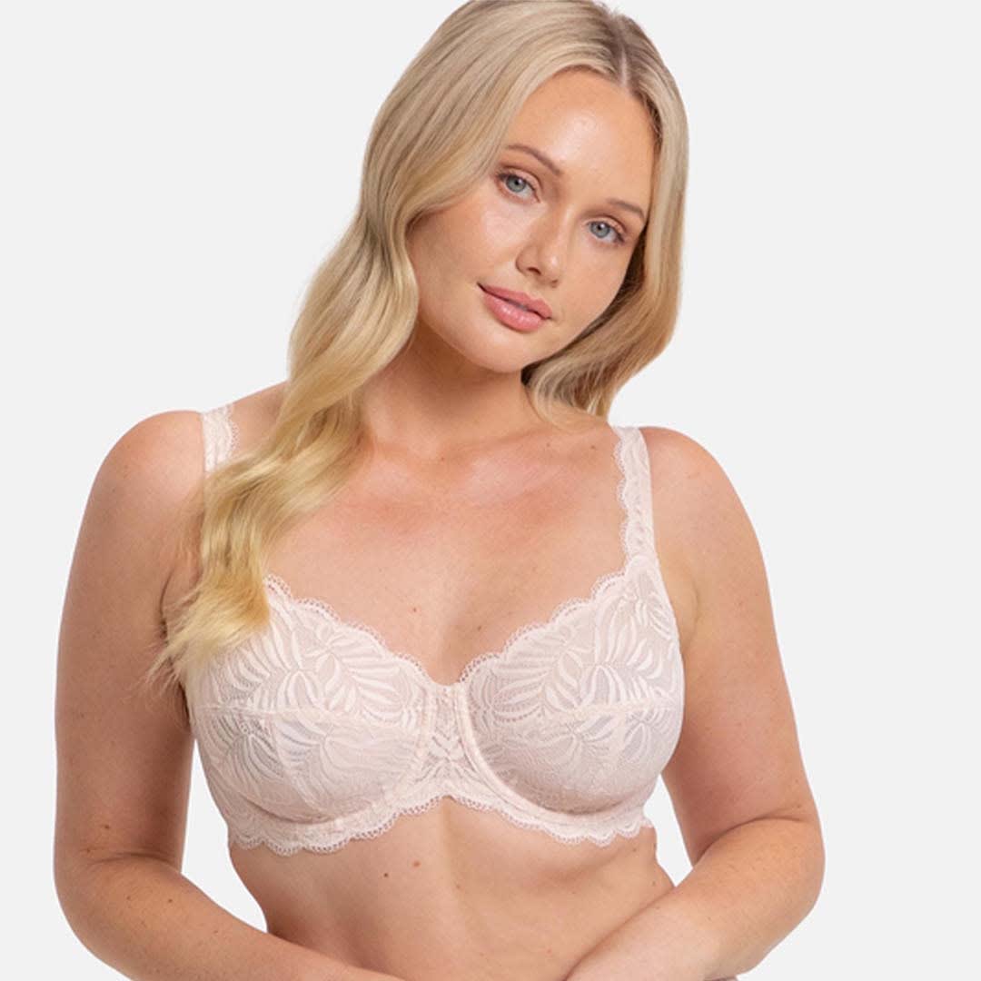 The Essential Lace Balcony Bra offers comfortable everyday support with elegant lace detailing for a refined look. Its underwire, non-padded three-piece cups create a beautifully rounded silhouette, while wide adjustable lace straps and fully lined cups and back panels provide added support.