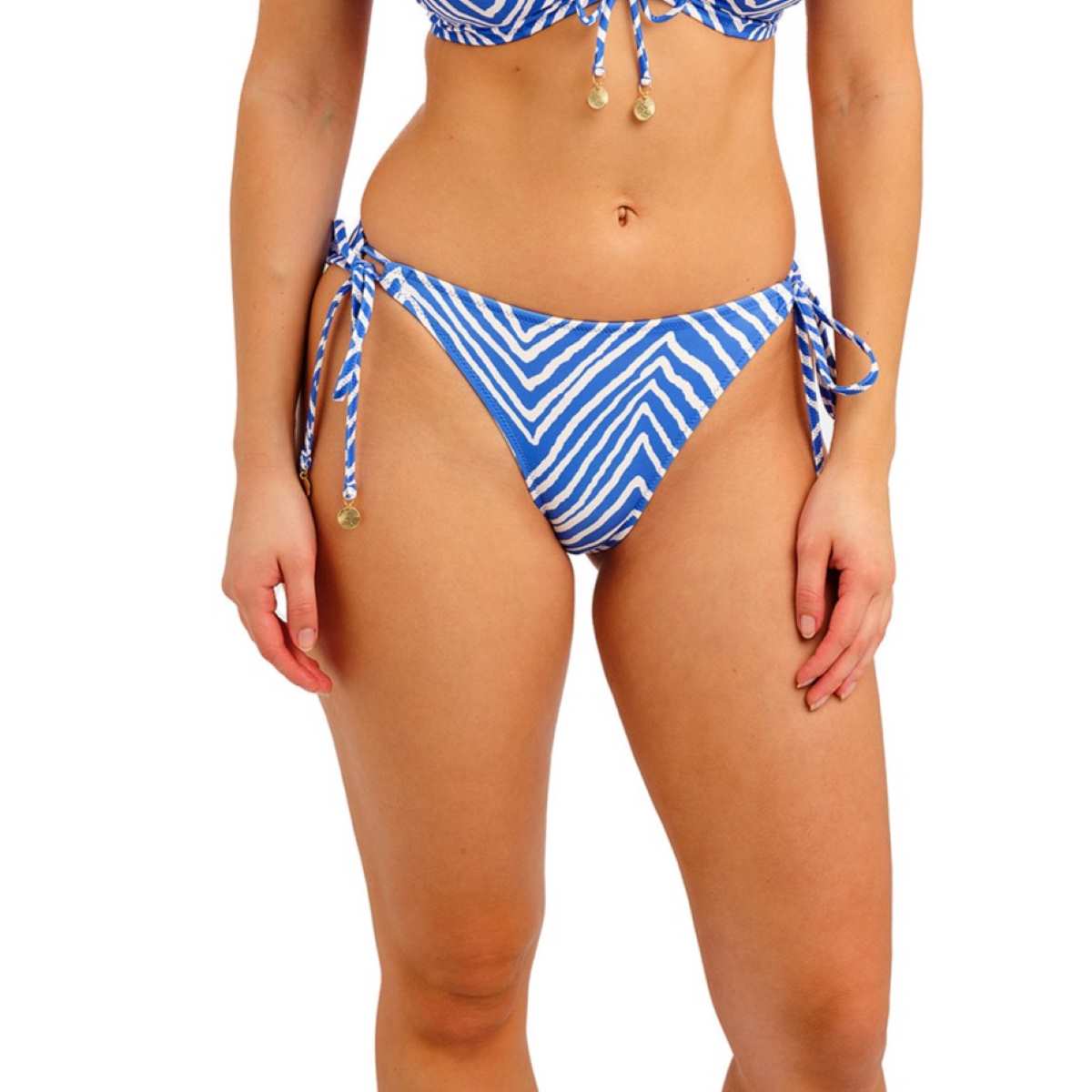 The Fiji Falls Tie Side Bikini Brief sits low on the hips with medium bottom coverage and narrow, adjustable sides.