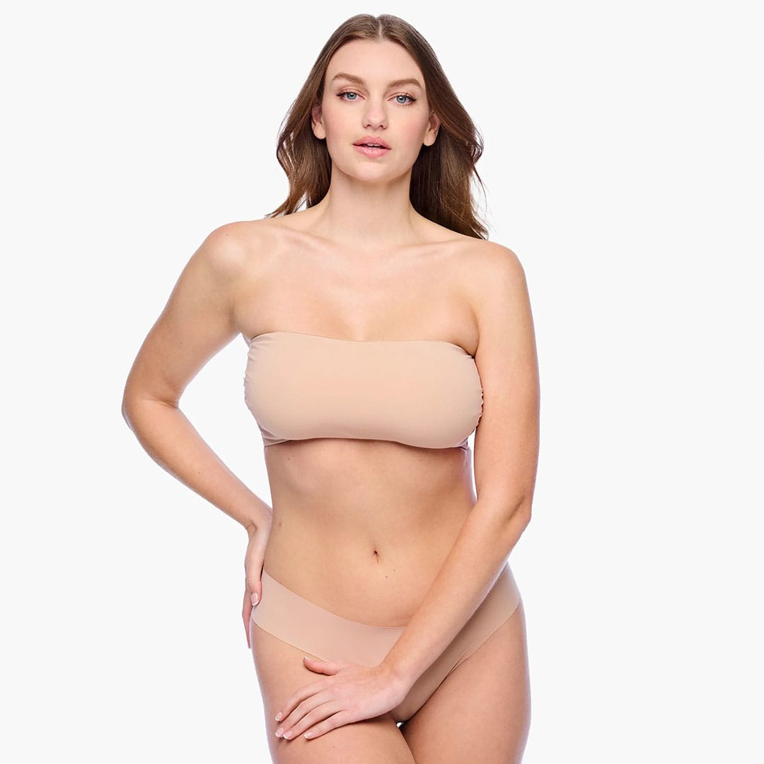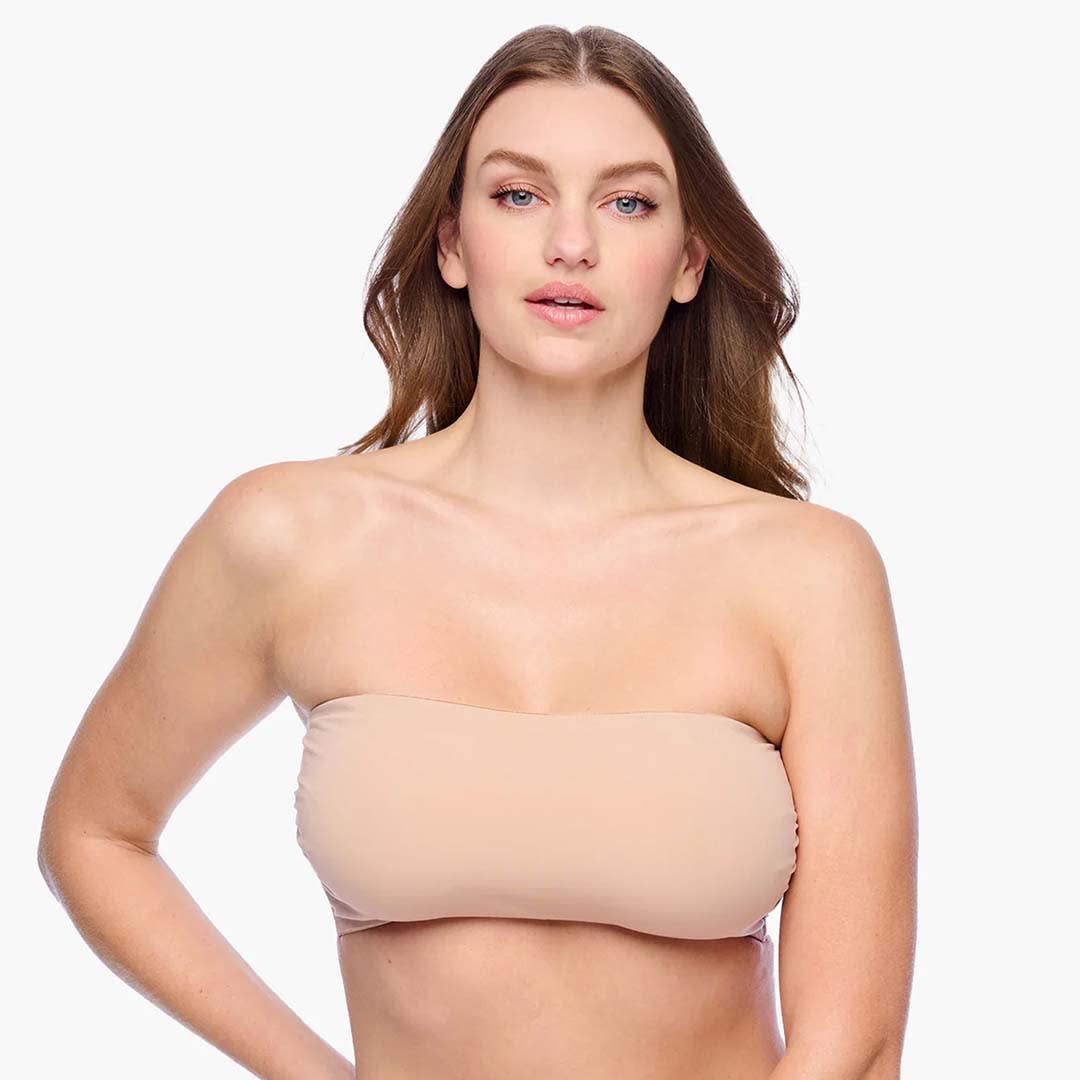 A wireless bandeau thoughtfully designed for smaller frames with fuller busts. Crafted from free-cut, lightweight microfiber that is seamless, soft, and ultra-comfortable. Free Cut Curvy Bandeau bra features non-padded cups lined with power mesh for a smooth, supportive fit, along with a pull-on style and an under-bust band for added hold. Side boning and silicone grip strips provide extra support and ensure the bandeau stays securely in place. For best care, hand wash cold and lay flat to dry.
