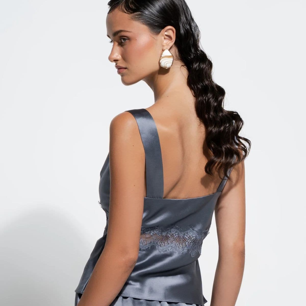 The Gigi Cami is crafted from 100% silk and drapes beautifully on the body with a bias-cut silhouette that moves with you. A double-layered bust offers subtle coverage and structure, while delicate lace inserts under the bust add a touch of feminine detail. Finished with wide shoulder straps for comfort and balance.