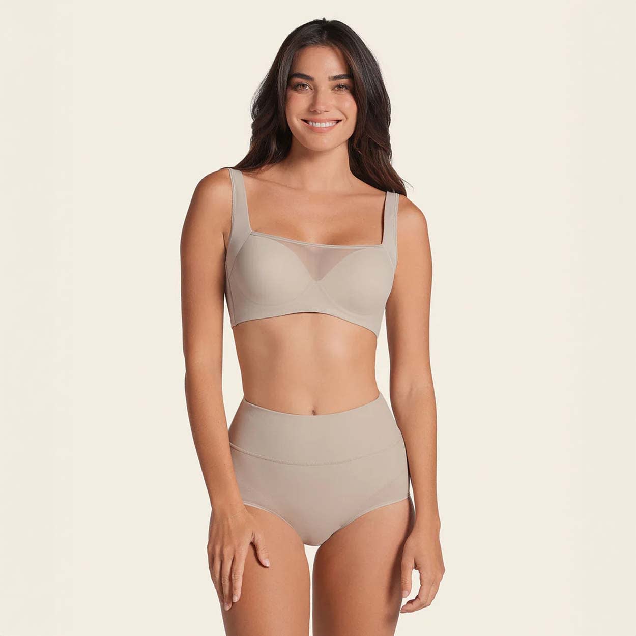 The High-Waisted Classic Shaping Tummy Control Brief offers the perfect blend of comfort and compression. This brief features a double-layered waistband and tummy for stronger shaping, sculpting your waist and flattening your mid-to-lower tummy. Flexible side boning ensures it won't roll down, and the lightweight SkinFuse® fabric gives a second-skin feel. With a slightly sheer back, it feels lighter while still offering a gentle butt-lift effect. Minimal seaming ensures an invisible look under clothing, and a 100% cotton gusset adds comfort.