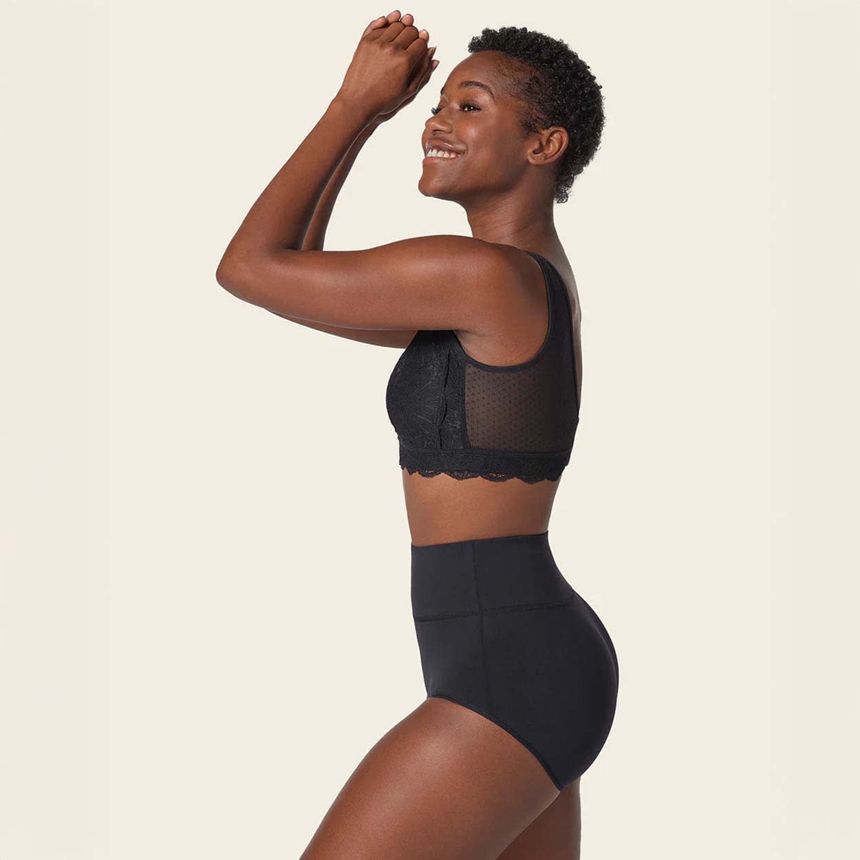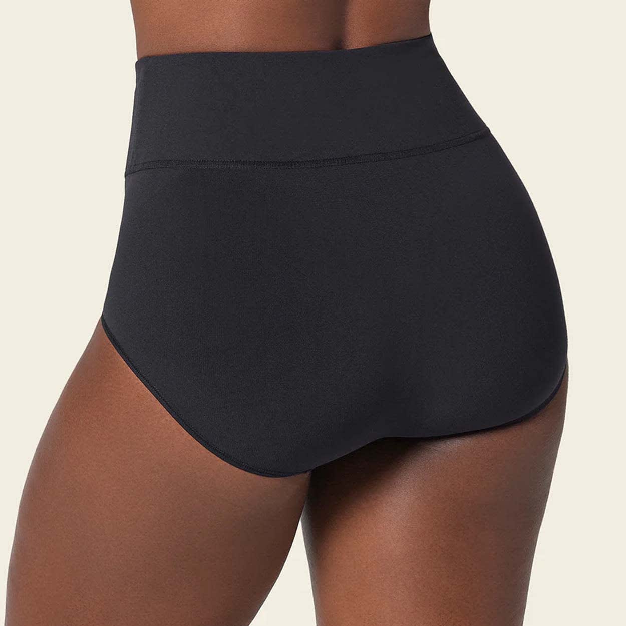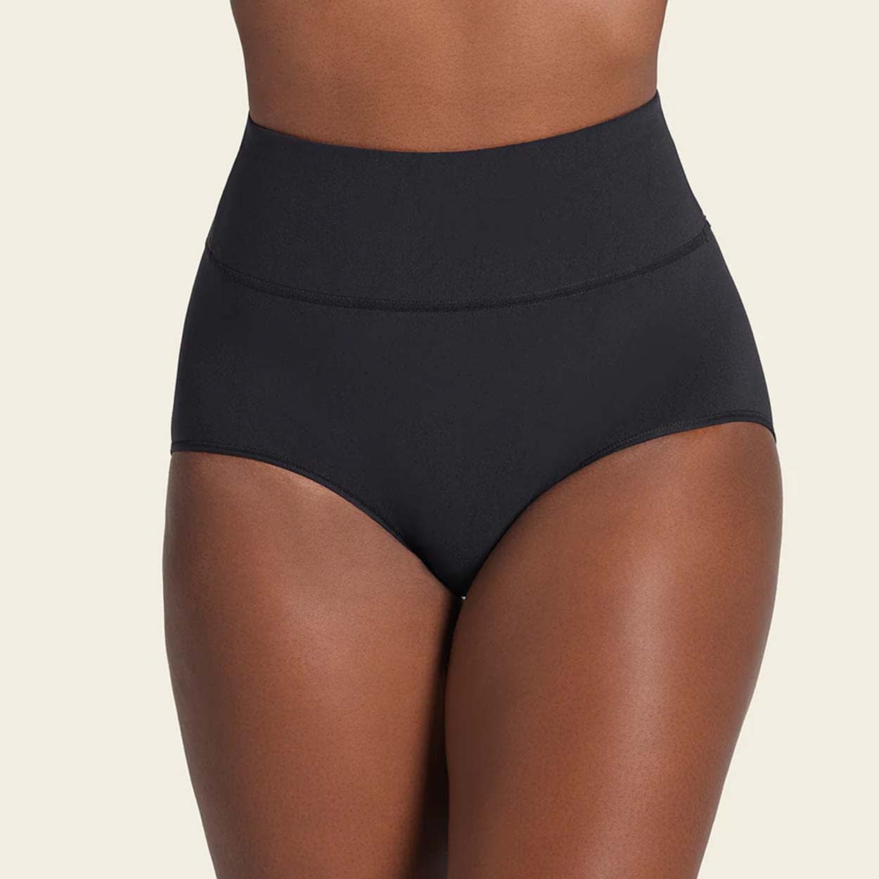 The High-Waisted Classic Shaping Tummy Control Brief offers the perfect blend of comfort and compression. This brief features a double-layered waistband and tummy for stronger shaping, sculpting your waist and flattening your mid-to-lower tummy. Flexible side boning ensures it won't roll down, and the lightweight SkinFuse® fabric gives a second-skin feel. With a slightly sheer back, it feels lighter while still offering a gentle butt-lift effect. Minimal seaming ensures an invisible look under clothing, and a 100% cotton gusset adds comfort.