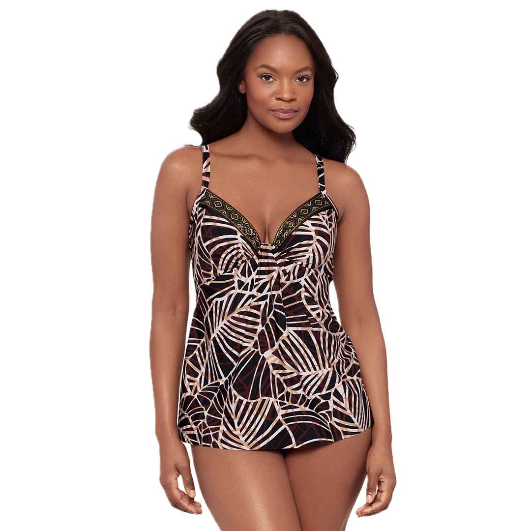 The Let's Be Fronds Marina Underwired Padded Tankini Top features underwired moulded cups for lift and shape, elegant shirring to enhance your cleavage, and a softly draped front that comfortably conceals the tummy for effortless confidence.