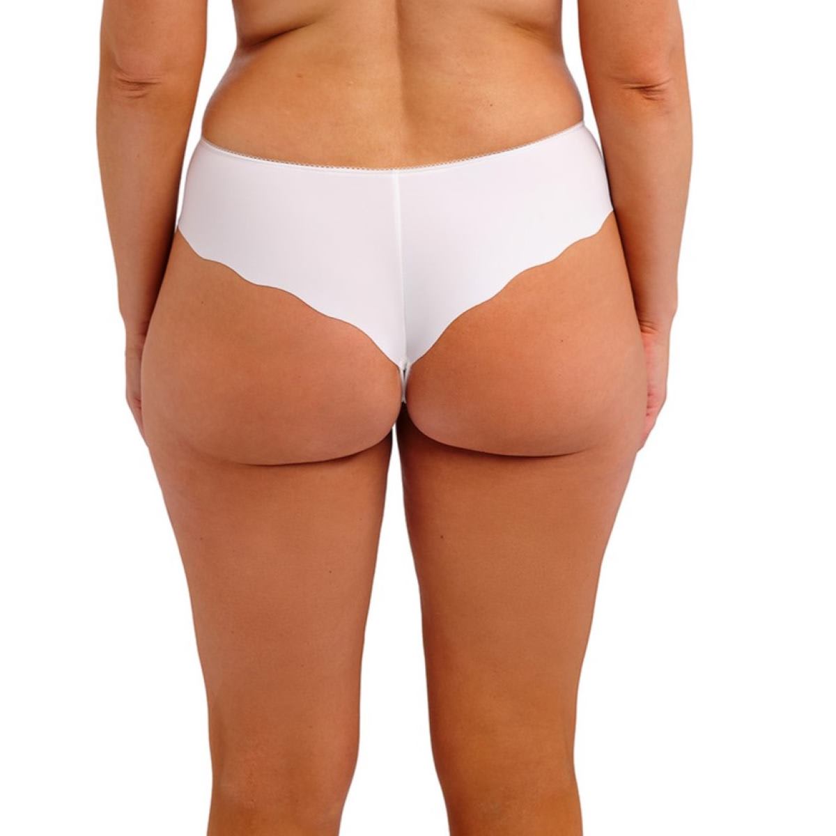 This panty features luxurious printed embroidery at the front leg and a spot mesh front panel lined for modesty and comfort. Crafted from soft-handle, clean-cut fabric, it provides a smooth finish with a second-skin feel and no visible pant lines. A metallic charm with a gem at the centre front adds a delicate, elegant touch.
