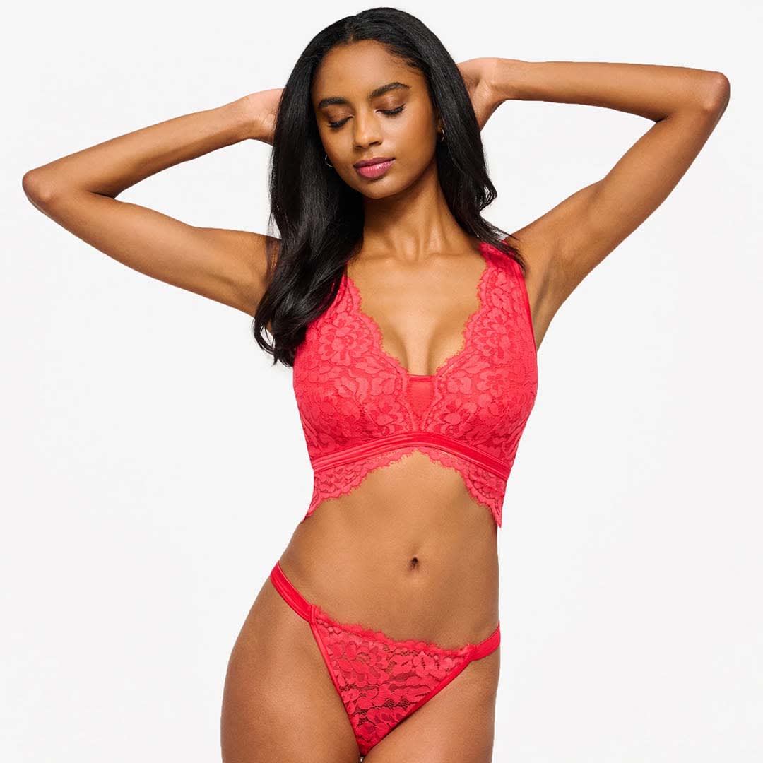 A low-rise Magnolia String Thong is designed for minimal coverage and maximum allure. It features a strappy satin waistband that adds a sleek, elegant touch, with no rear coverage for a smooth, barely-there feel. Finished with a cotton-lined gusset for comfort. Care: Hand wash only. Do not tumble dry.