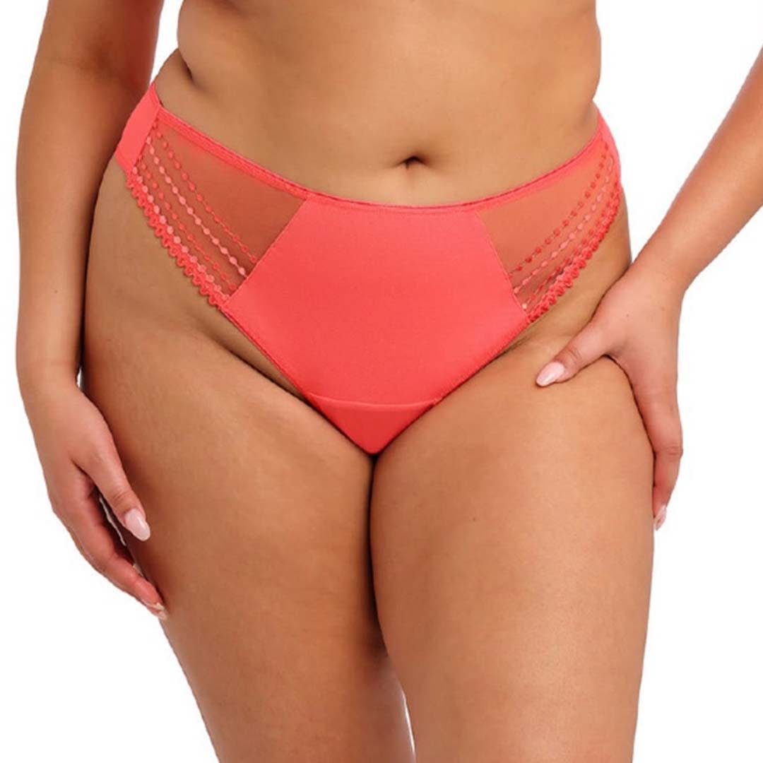 Matilda flaunts your curves with a new sheer collection with embroidery that emulates rows of beads. You'll be struck by Matilda's bold colours and sheer fabric panels. The Matilda thong features a sexy sheer back and sides with minimal rear coverage, but has a cotton jersey lined panel at the front for comfort and modesty.