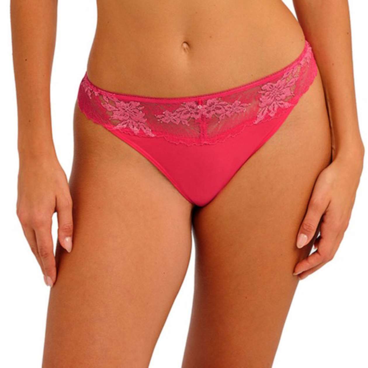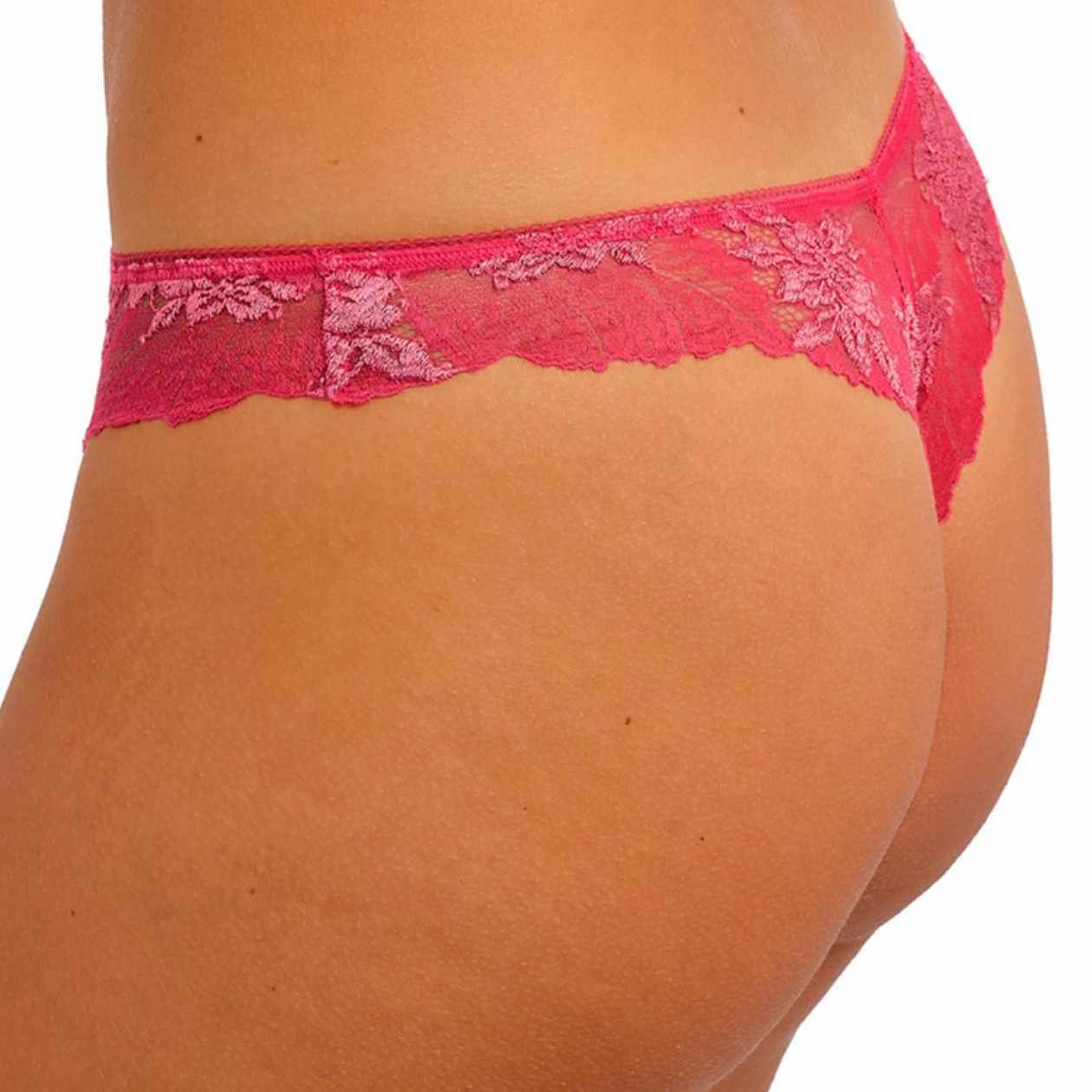 Embrace a barely-there sensation with the Most Divine Tanga, crafted with a low-rise waist and minimal back coverage. Stretch lace front inserts with intricate viscose yarn flower accents meet soft stretch microfibre for comfortable modesty. The all-stretch lace back features a delicate scallop edge, complemented by a narrow mesh waist elastic, concealed leg elastics for a smooth finish, and a sparkling diamanté charm at the center front.