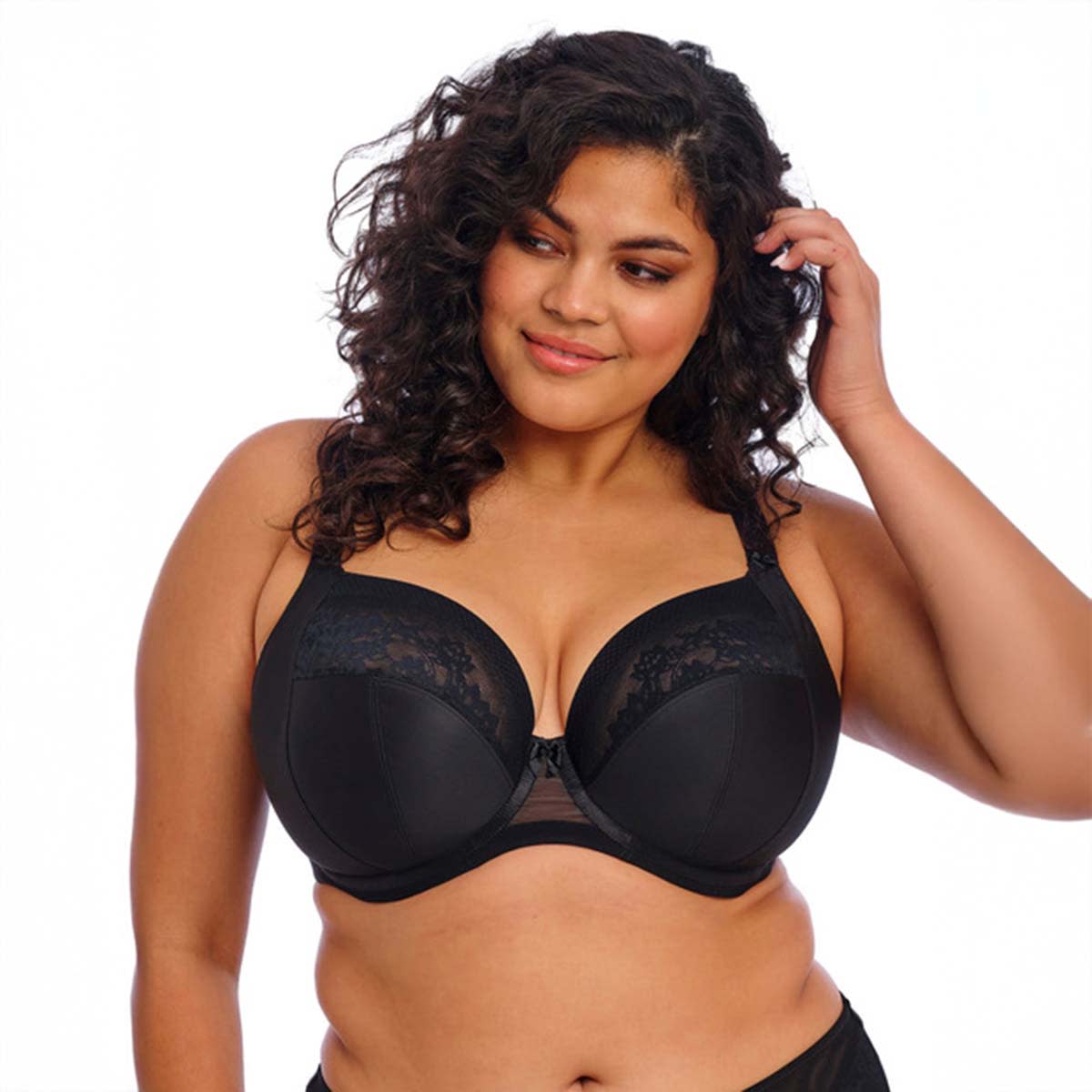 Based on Lucie EL4490, this bra has a Powerful stretch lace is soft, flat, smooth and matt, with a contemporary design, for a fresh modern look. Lace top cup has no neck edge elastic, for a smooth finish, rounded shape and ease of fit. Double layer wings with encased elastics create soft smooth edges, for comfort with minimal rolling.