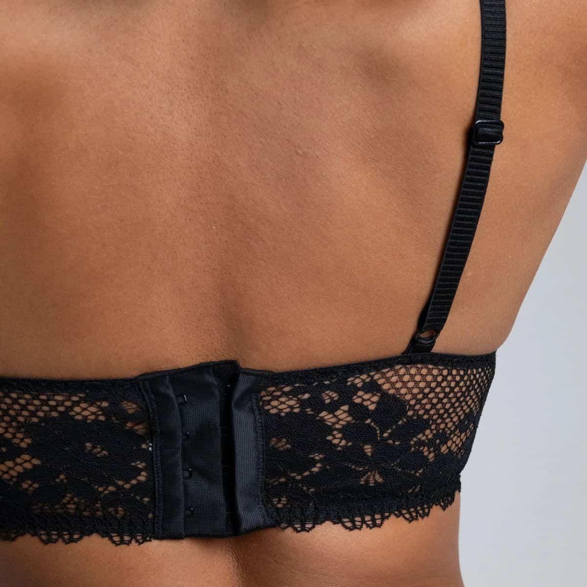 A triangle without underwire all in lace A floral lace that lets the shapes show through. The straps are adjustable to adjust according to needs.