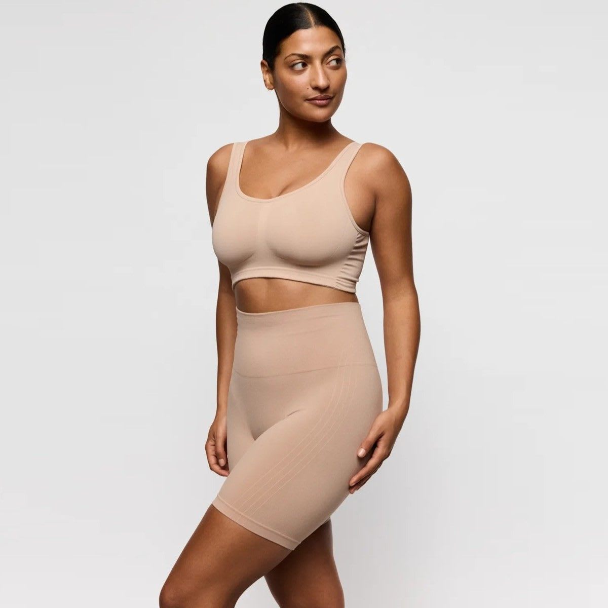 Our shaping solutions: Pure confidence, pure comfort. Smooth anti-chafing shorts with a high waist, designed to prevent friction and irritation on the thighs. Stylish and versatile.