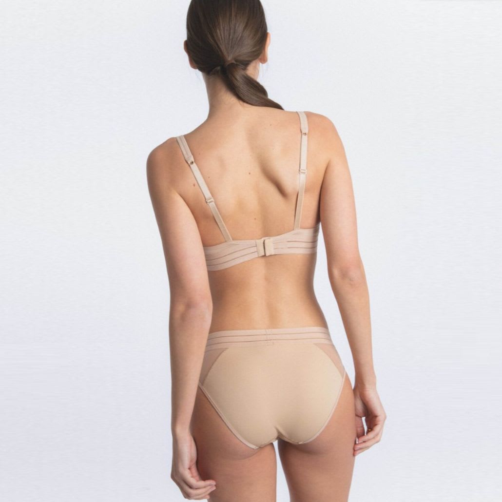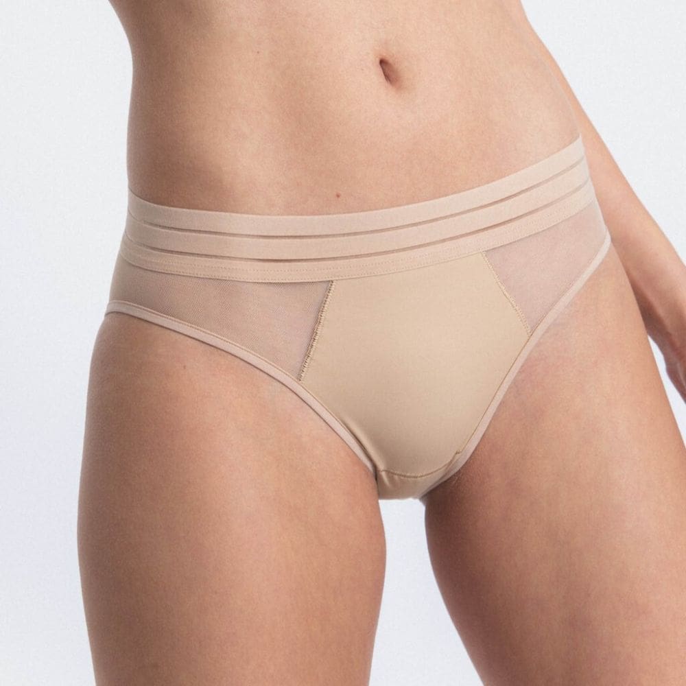 These comfortable briefs are made of lycra. They are invisible under clothing and extremely soft when you touch it. It has a second-skin effect thanks to the ultrafine and invisible fibre. “Strategic-chic” combination for an elegant and basic effect