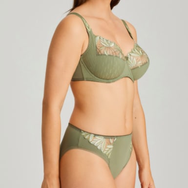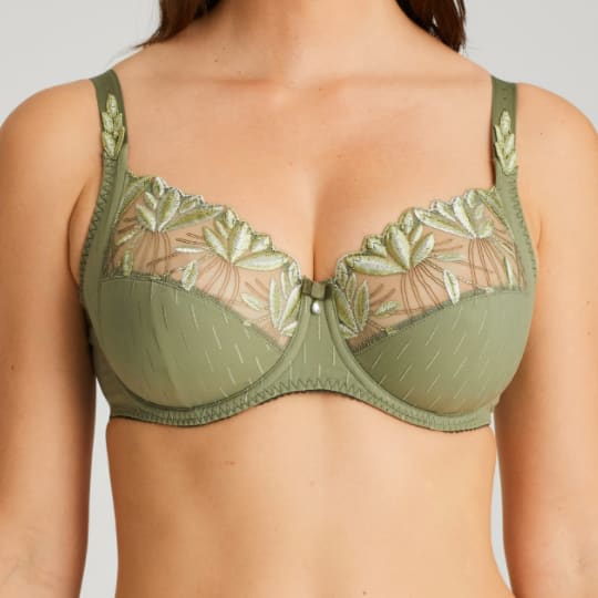 The Orlando Full Cup Bra offers ultimate comfort with excellent fit and coverage. This three-piece underwired full cup, full support bra has sheer upper cups and straps adorned with elegant subtle shimmery embroidery in a beautiful leaf design. The sturdy cups and side panels lift and centre the breasts for a full round shape. Primadonna bras are tailor-made for larger cup sizes.