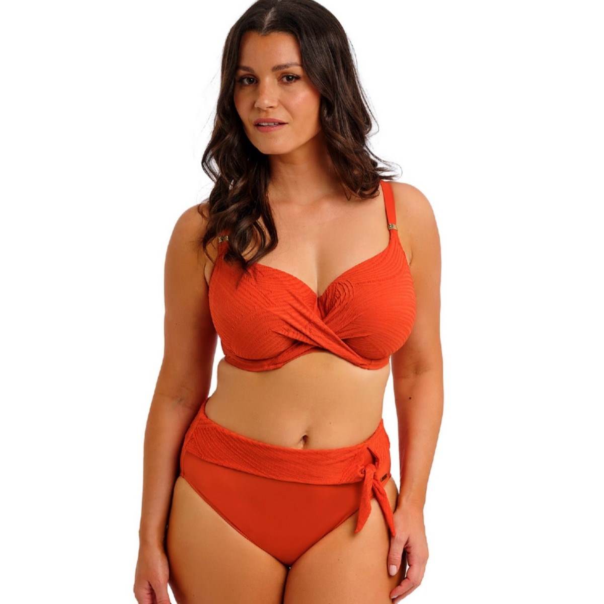 Discover our Ottawa High Waist Bikini Brief, designed for customizable coverage. The folded waistband with a tie detail allows you to adjust the waist rise according to your preference. This fully lined style offers both comfort and support. With a higher cut leg, it creates a flattering shape that accentuates your curves. Experience versatile and flattering swimwear with the Ottawa High Waist Bikini Brief.