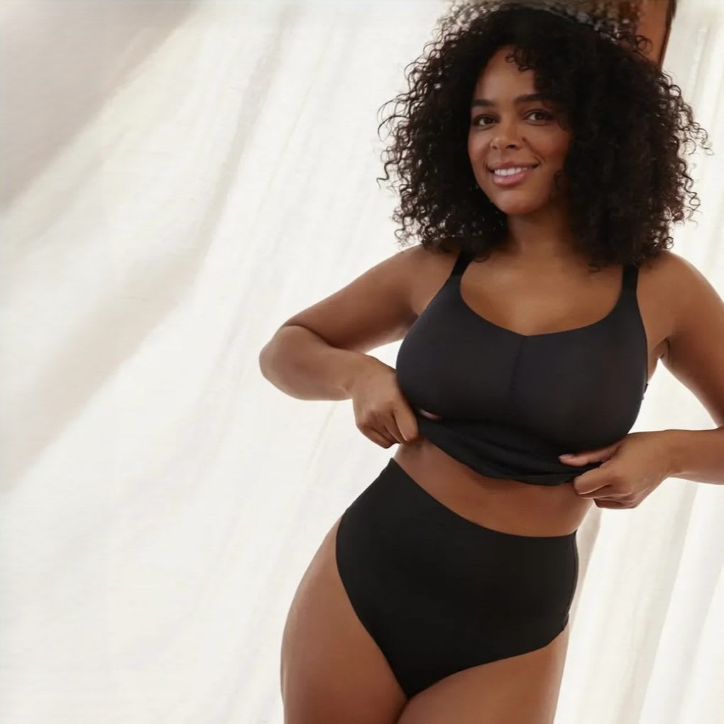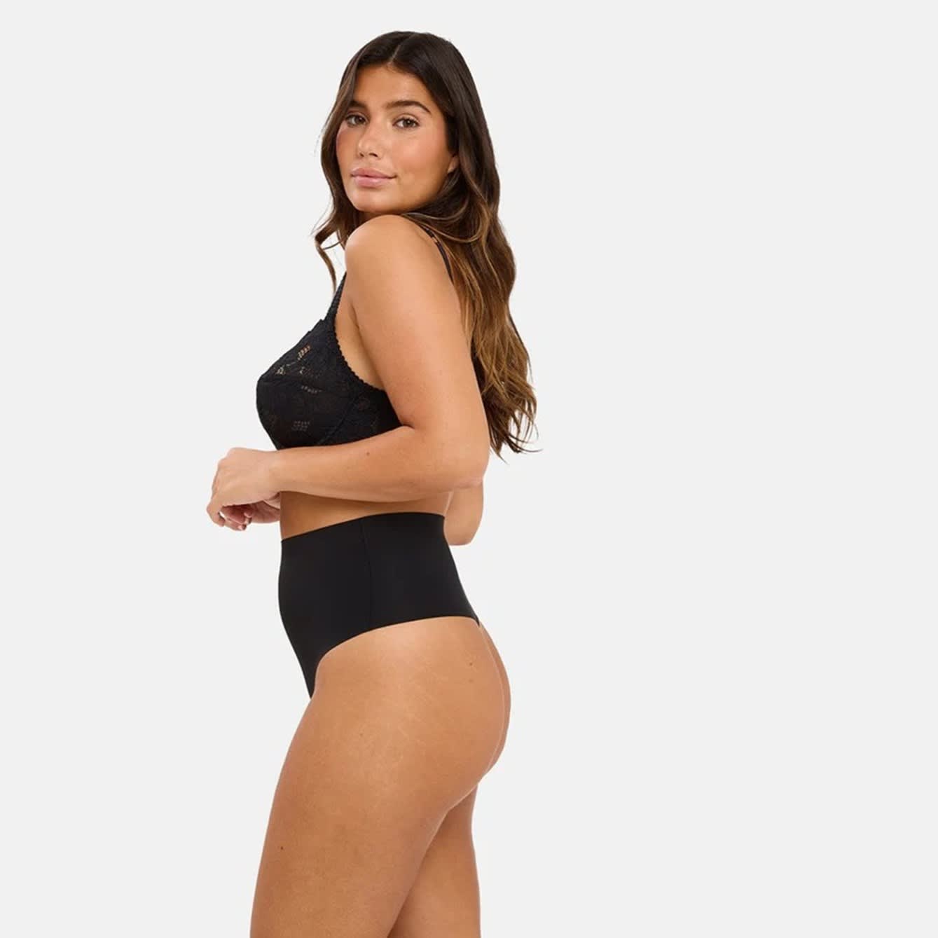 Shaping thong. High waist to slim the silhouette. Very soft microfiber with second-skin effect for maximum comfort. Flat finishes and no elastic for more discretion under your clothes. Cotton-lined gusset.