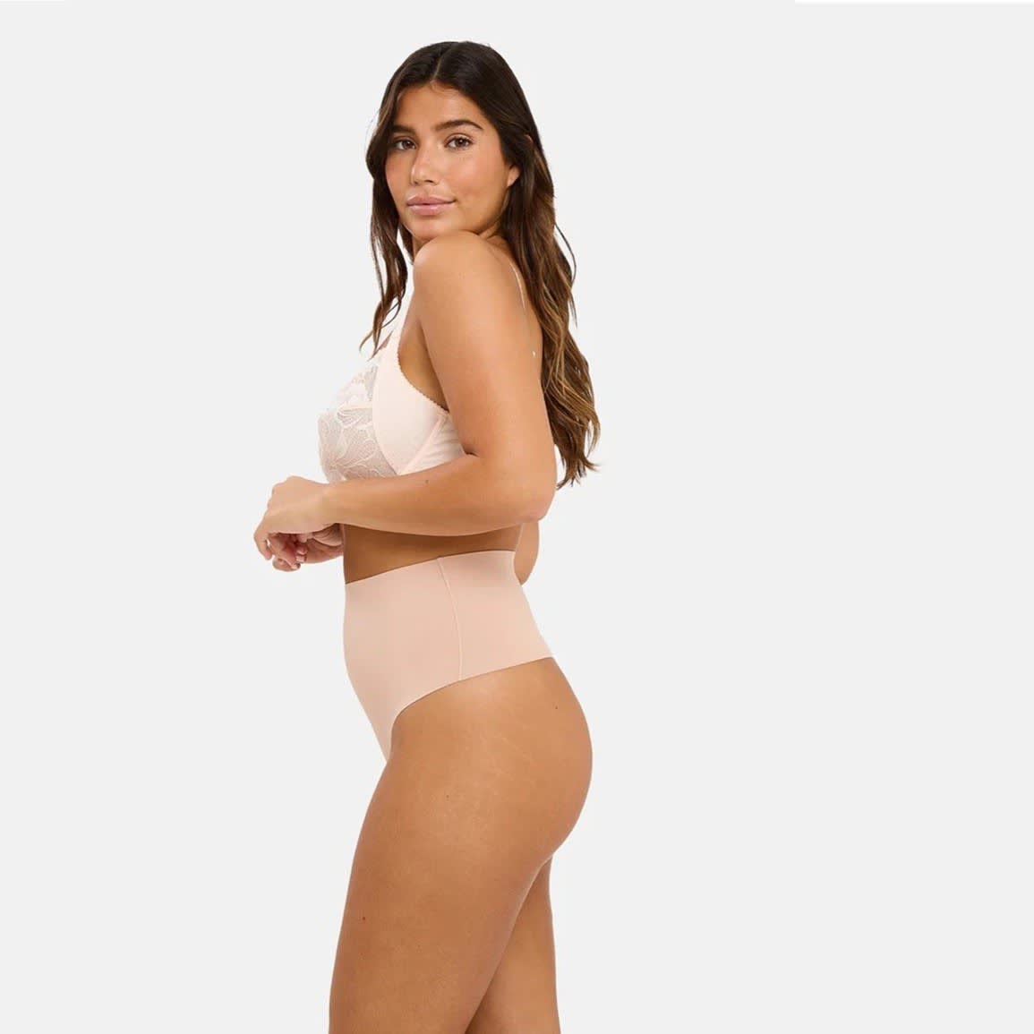 Shaping thong. High waist to slim the silhouette. Very soft microfiber with second-skin effect for maximum comfort. Flat finishes and no elastic for more discretion under your clothes. Cotton-lined gusset.