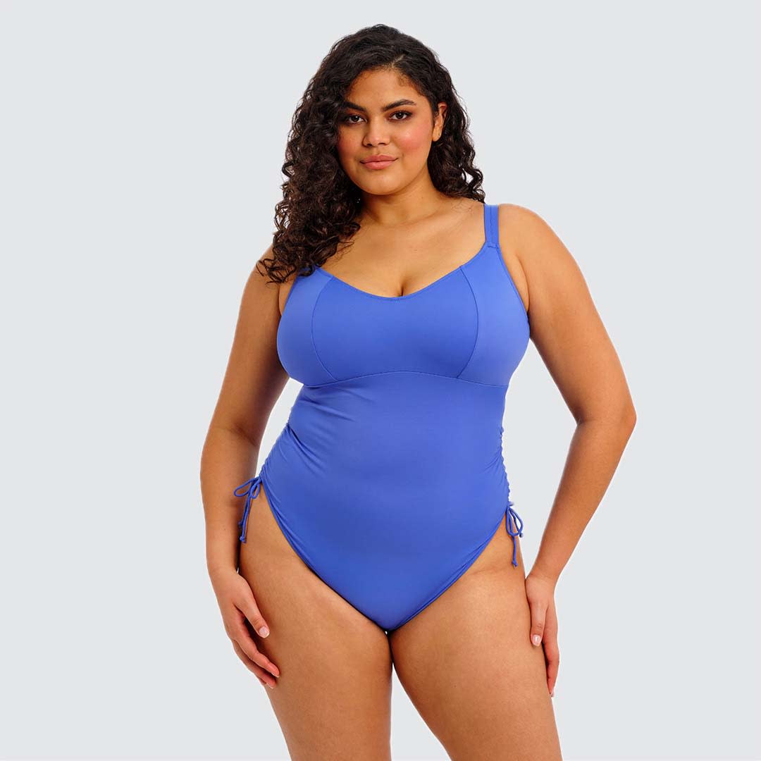 Designed without moulded cups for a lighter, less structured shape, the Plain Sailing Non Wired Swimsuit features a supportive suspended shelf within a wide underband, a clasp fastening with a low scoop keyhole back for easy dressing, adjustable sides for customizable coverage, lightweight LYCRA® XTRA LIFE™ fabric, and adjustable shoulder straps for the perfect fit.