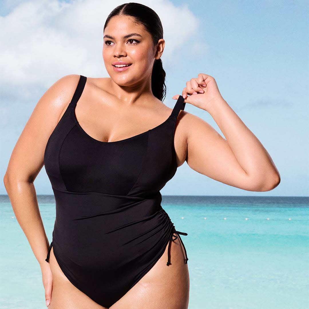 Designed without moulded cups for a lighter, less structured shape, the Plain Sailing Non Wired Swimsuit features a supportive suspended shelf within a wide underband, a clasp fastening with a low scoop keyhole back for easy dressing, adjustable sides for customizable coverage, lightweight LYCRA® XTRA LIFE™ fabric, and adjustable shoulder straps for the perfect fit.