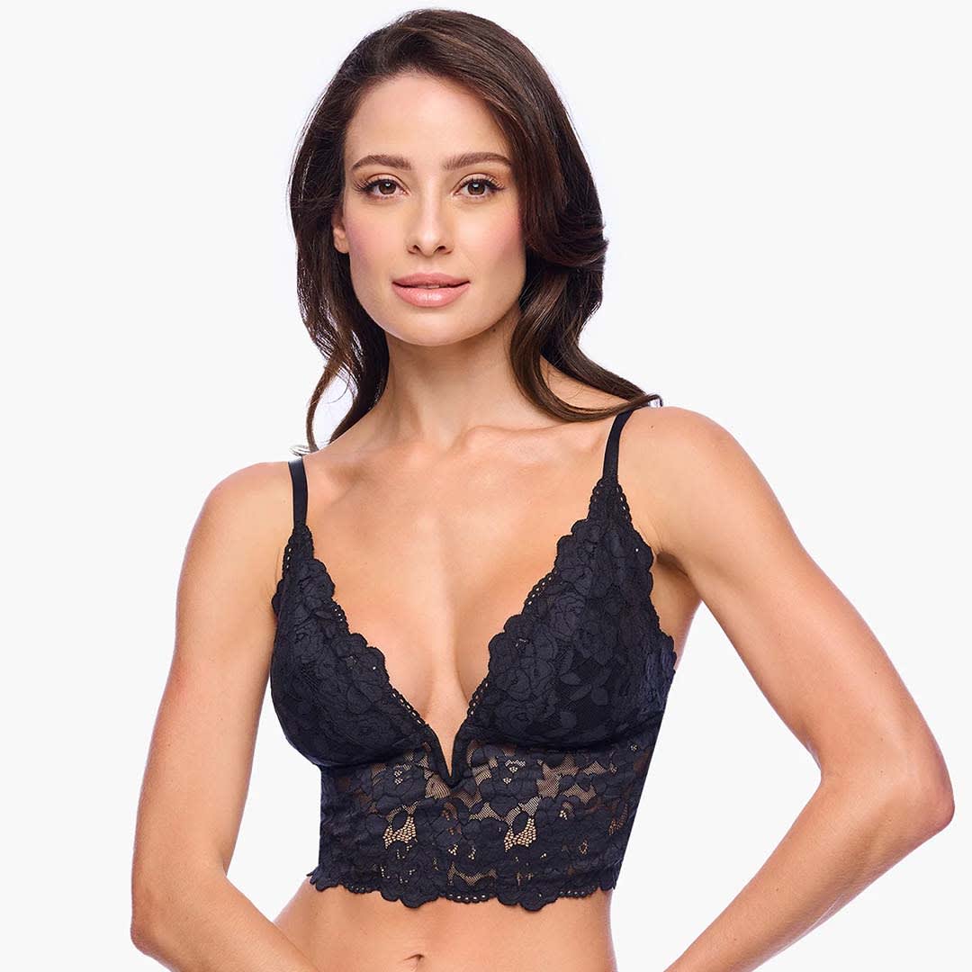 The Romanza Longline Bralette is a wireless bralette featuring non-padded, cotton-lined cups with a flattering V-wire plunge neckline. Perfect for layering when you want to reveal a hint of lingerie. Designed in a pull-on style with adjustable straps. Hand wash only; do not dry in the dryer.