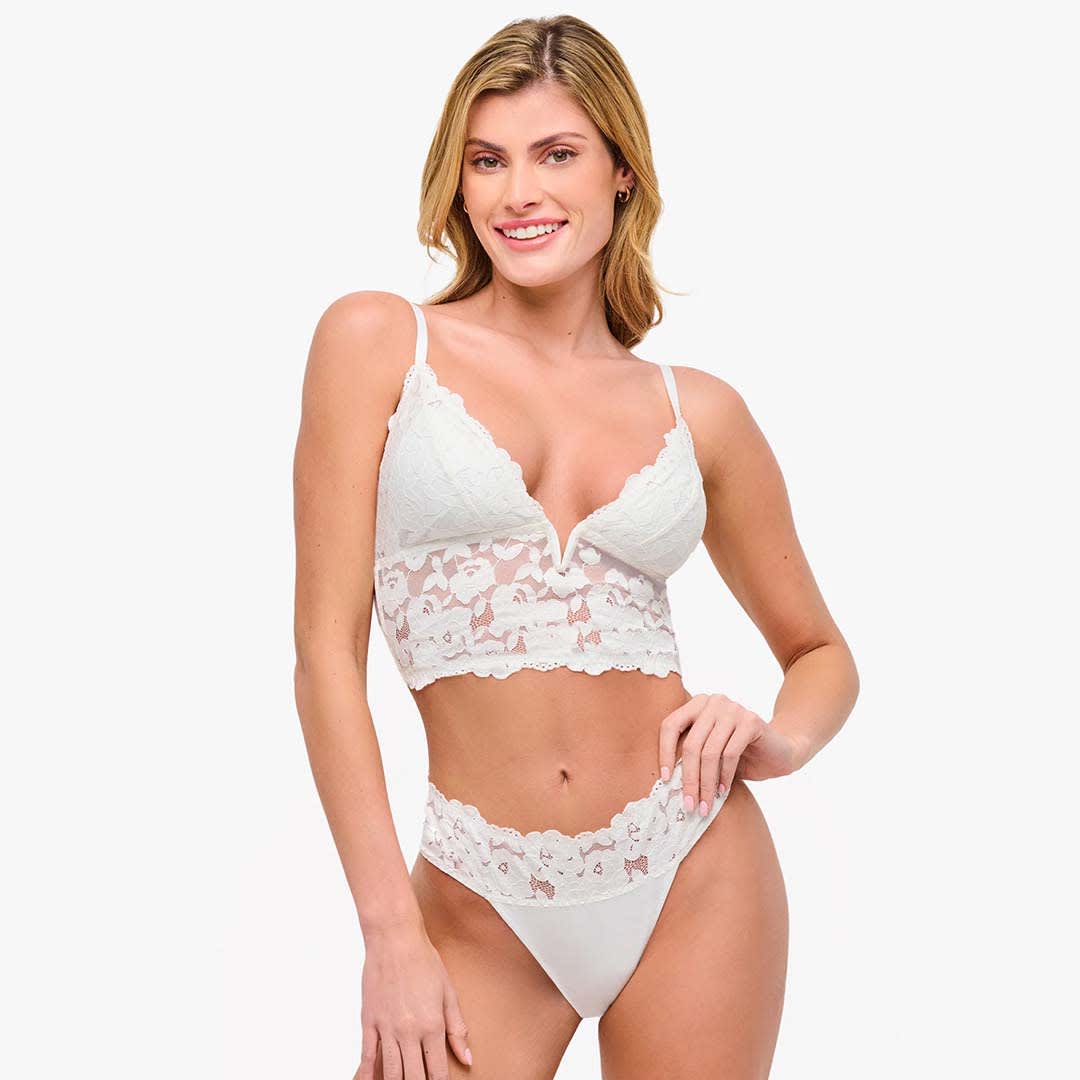 The Romanza Longline Bralette is a wireless bralette featuring non-padded, cotton-lined cups with a flattering V-wire plunge neckline. Perfect for layering when you want to reveal a hint of lingerie. Designed in a pull-on style with adjustable straps. Hand wash only; do not dry in the dryer.