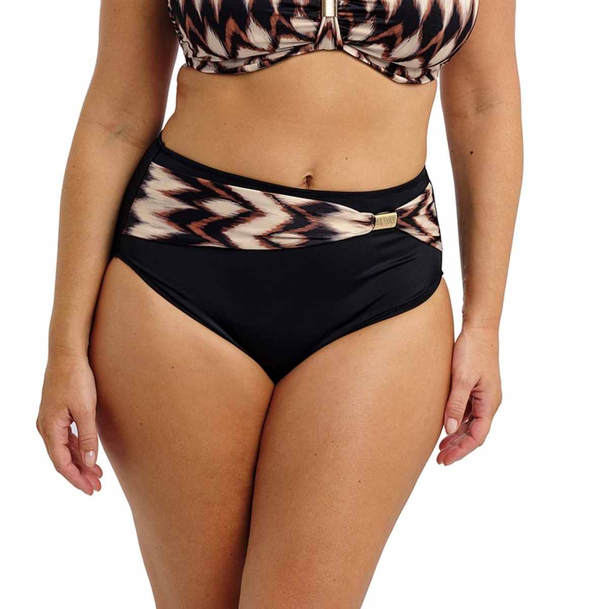 Sabana blends warm browns, blacks, and soft cream tones, finished with gold metallic accents for a look you won’t want to miss. This style offers higher coverage for added midriff support, complemented by a wide printed belt with metallic gold trim that won’t heat up in the sun. Fully lined for comfort and confidence.