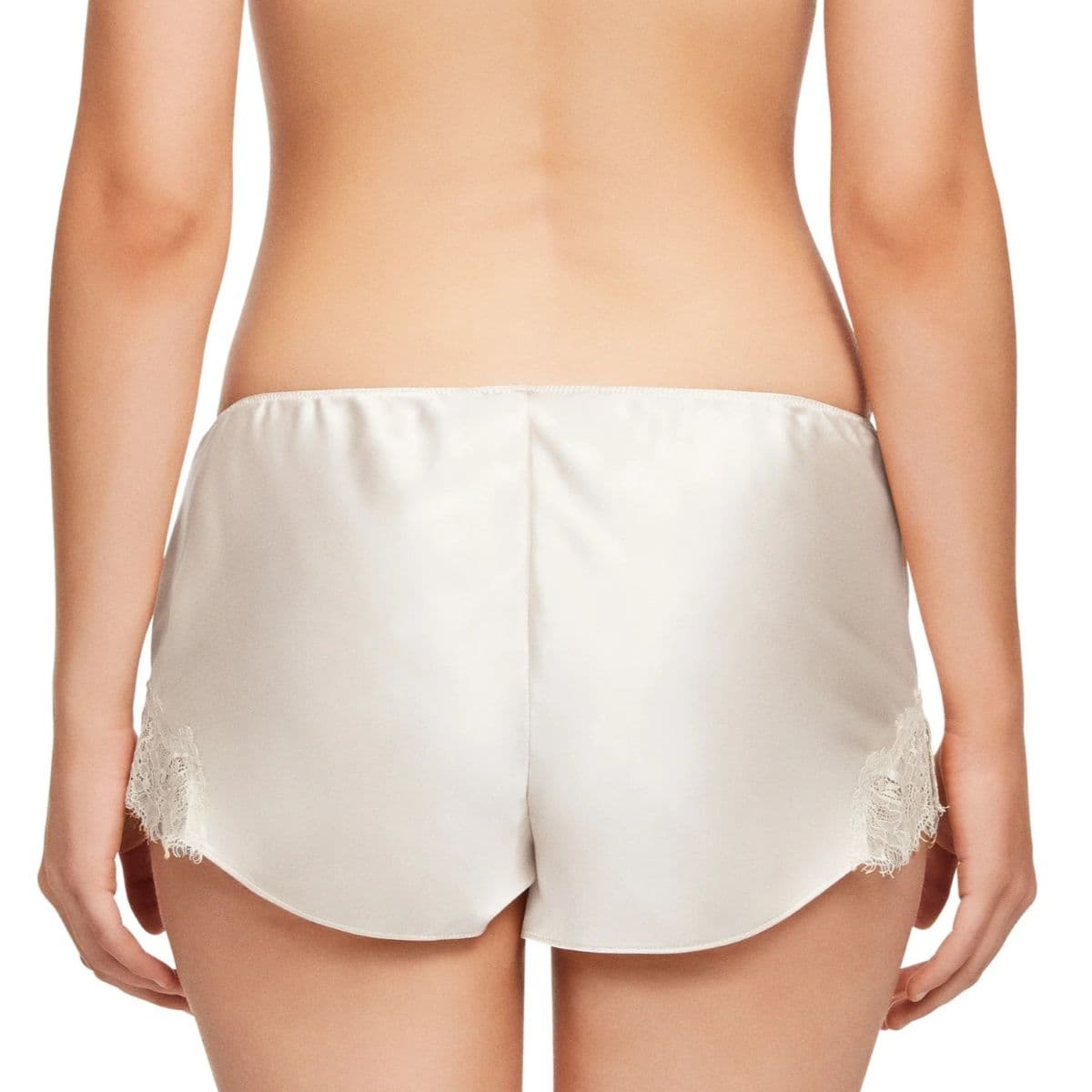 The Scarlett French Knicker is a flirty short made from lustrous silk and features eyelash lace detailing at the side splits.