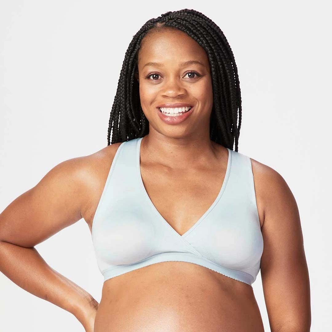 Serenity Wireless Nursing Bra is the ultimate nighttime nursing bra. Wireless and seamless, it offers wire-free support with a silky-soft feel and heat-moulded cups for shape and comfort. The crossover cups pull aside easily for hassle-free breastfeeding, while the secure elastic underband and racerback design keep you (and your nursing pads) in place. Ideal for sleep, lounging, light activity, or yoga.