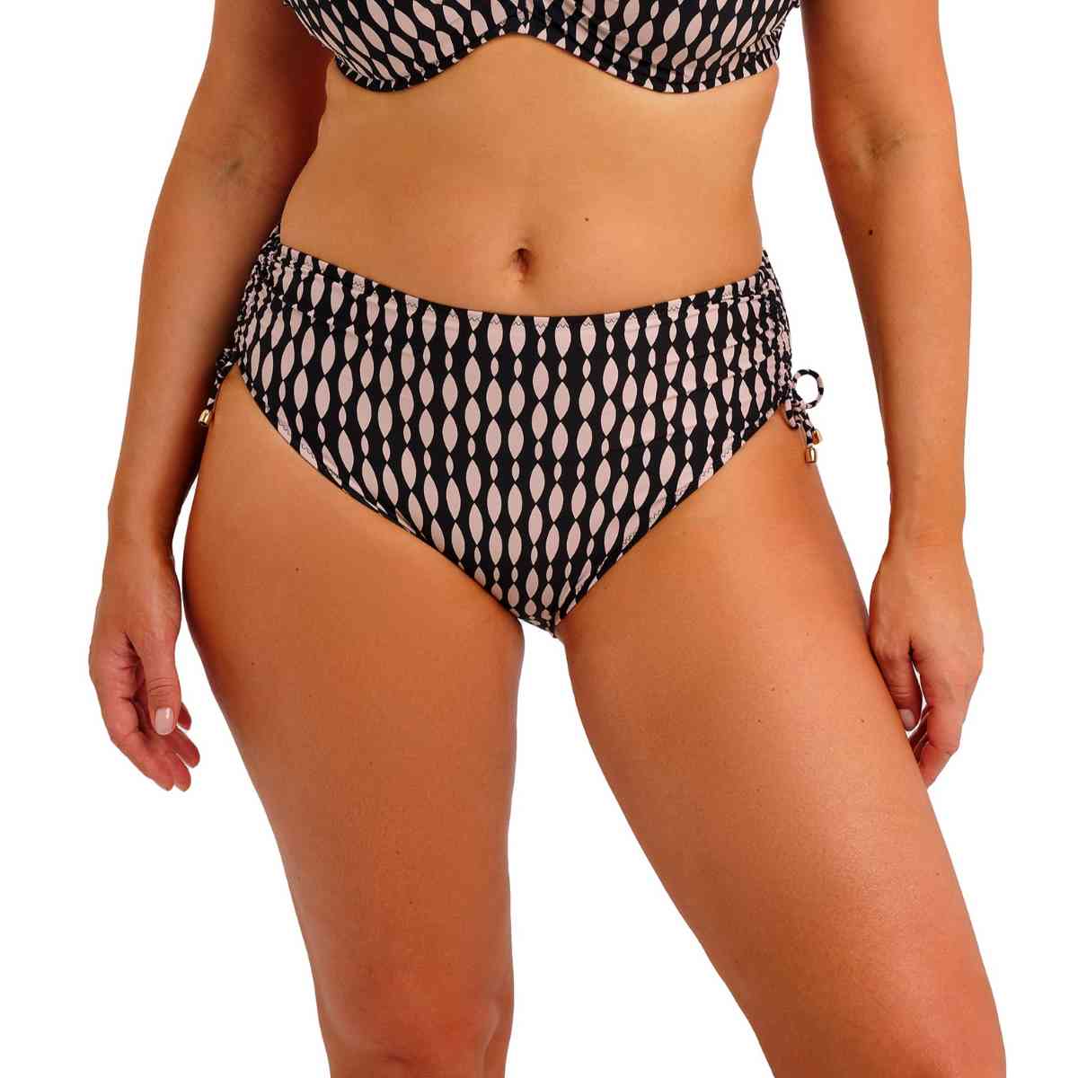 Designed to flatter and enhance your silhouette, this style features a high-rise cut for confident coverage. Adjustable side ties allow you to customise the leg line for your perfect fit, while gold-coloured bead detailing on the tie ends adds a refined finish and is designed not to heat up in the sun. Fully lined for comfort and support, it’s the perfect blend of style and practicality for poolside days.