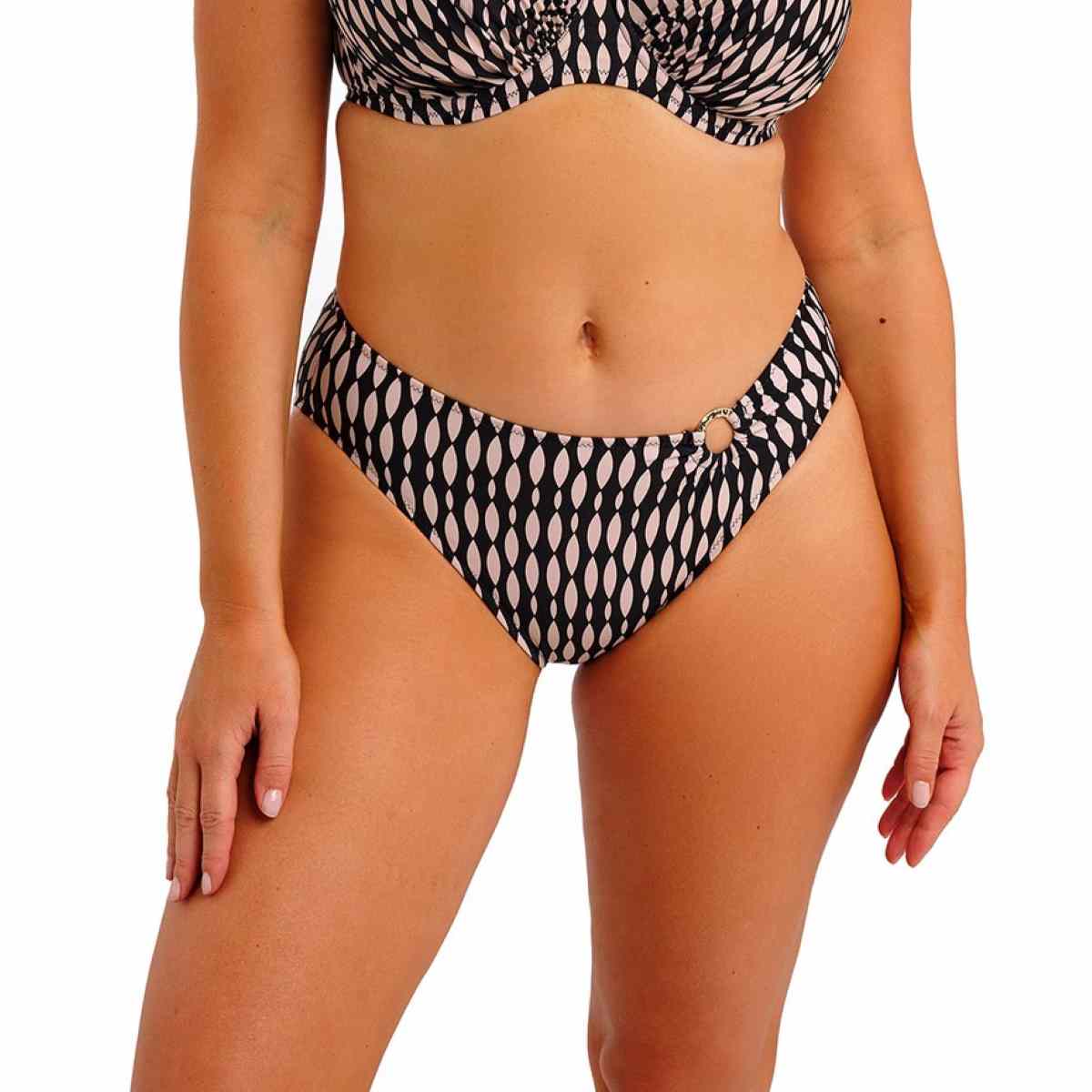 This style offers medium coverage for a balanced and flattering fit, finished with a hammered effect gold-coloured ring detail at the front waist for an elevated touch. Fully lined for comfort and confidence, the design detail is crafted to stay cool in the sun, making it both stylish and practical for all-day wear.